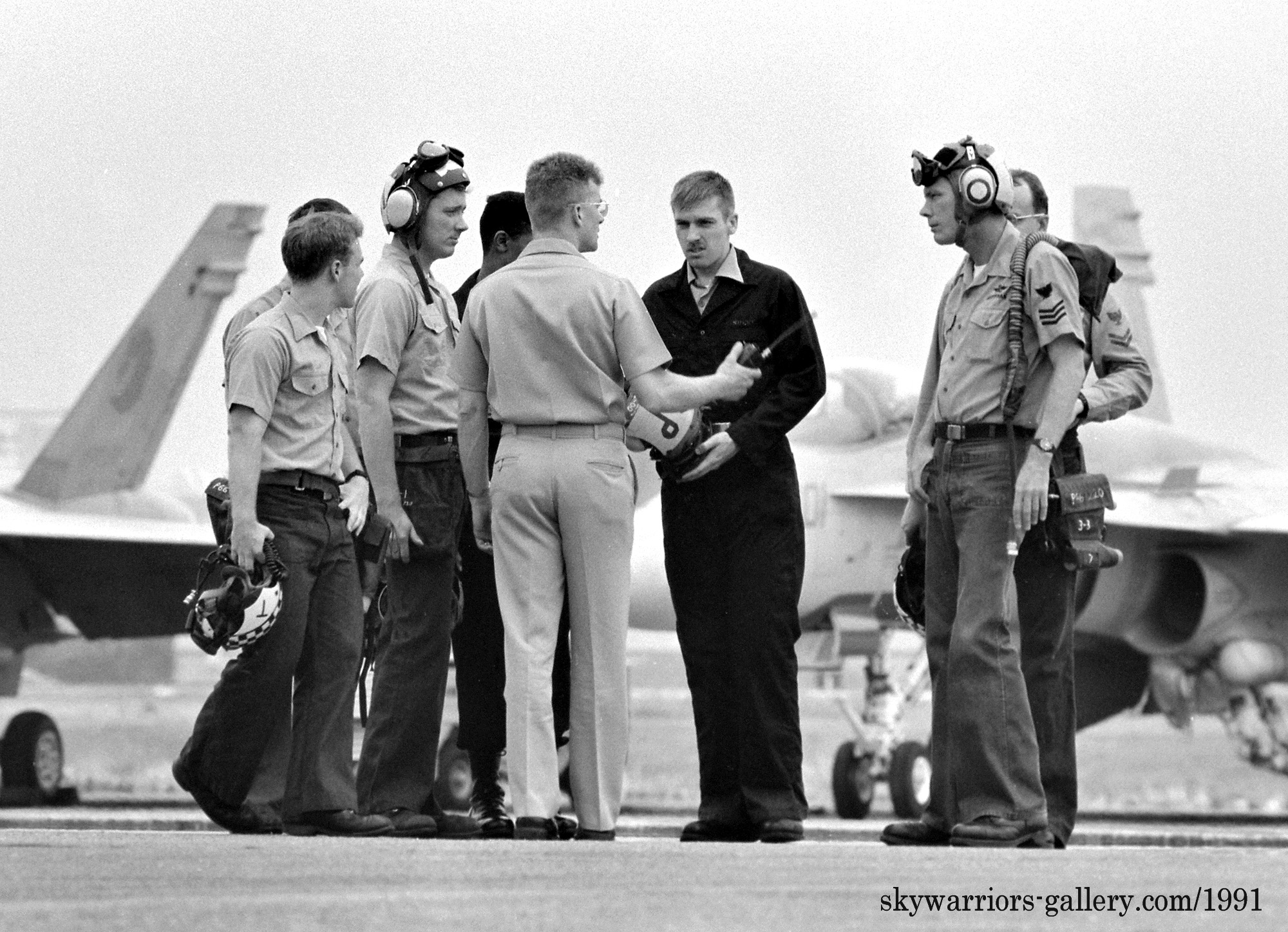 ↑ 航空ショーでの展示飛行を終え、機体がエプロンに戻ってきた後、VFA-192のスタッフはエプロンで打ち合わせを行っていた。こうした風景も記録として残しておくと当時の制服/装備なども窺い知れて面白い。