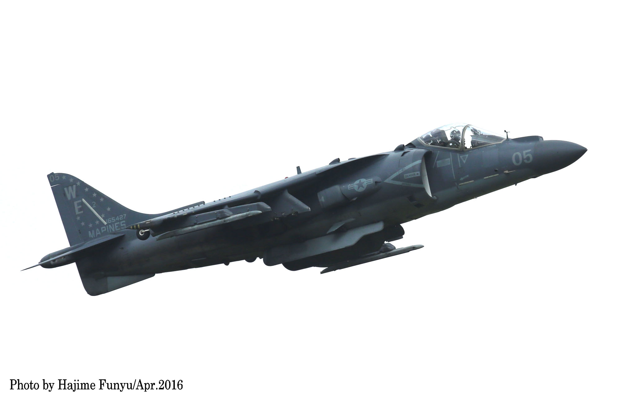↑2016年5月某日再び厚木基地に飛来したAV-8B VMA-214/WE-01 Bu.No.165580。この時WE03も伴った2機での厚木飛来であった。フニュ師匠撮影