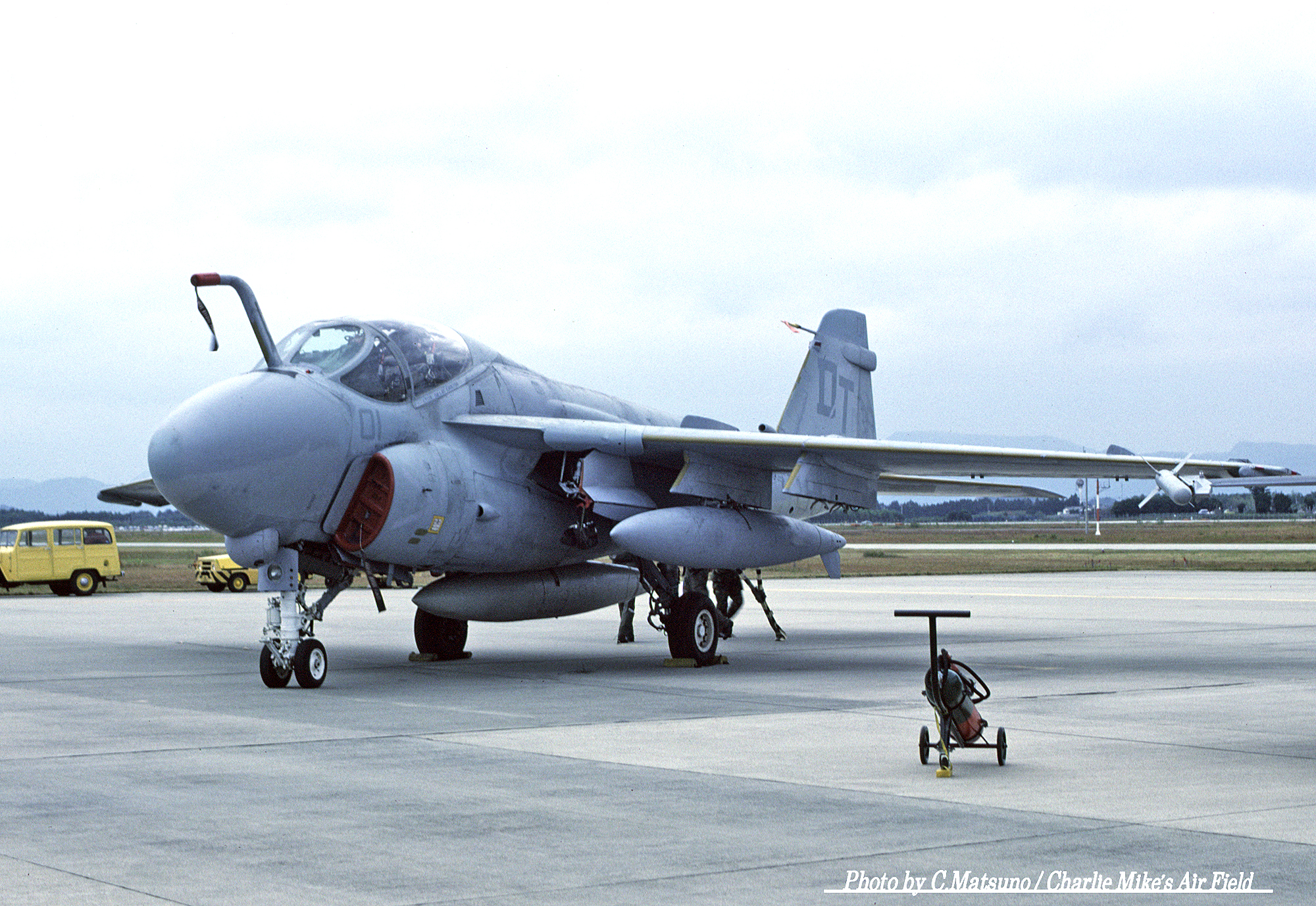↑ 1984年9月 雨の降る三沢基地の航空祭に展示されたVMFA(AW)-242のA-6E。確か私が撮影できた唯一のDTレターのA-6Eである。