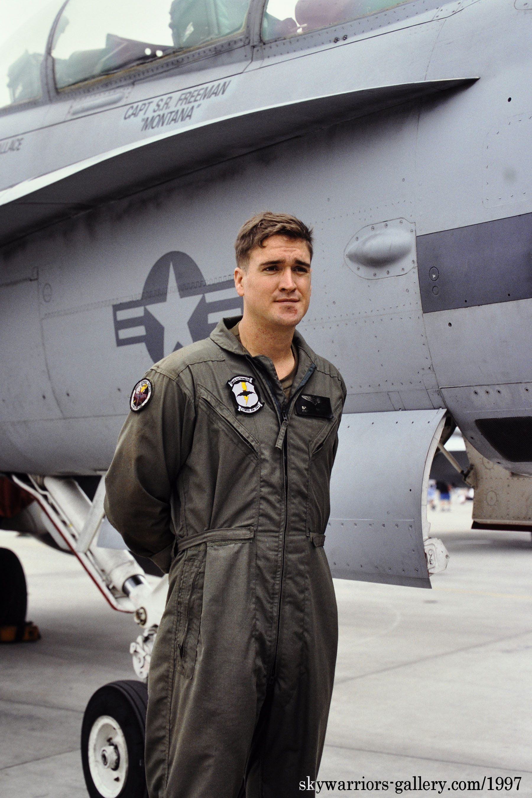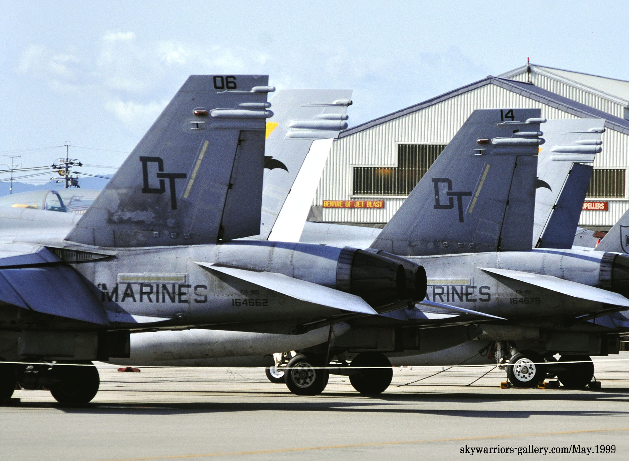 ↑上写真2枚は、1992年11月浜松基地に展示されたVMFA(AW)-242のFA-18D DT-00/DT-03。この頃は、尾翼内側の電光は全てグレー色で統一されていたようだ。文字も黒でハッキリ書かれ、グリーンナイツVMFA(AW)-121のFA-18Dとは対照的だった。