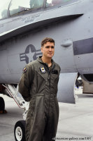 ↑ 2003年に初めてブラックテールとしてデビューした機体で大いに注目された。スコードロンカラーの黄色を国籍マークにまで使い、Modexや部隊ナンバーはオカルト風の文字で書かれている。ジェットインテークの注意書きも黒と黄の配色で、後のショーバードの基準となった機体である。F/A-18D Bu.No.164652