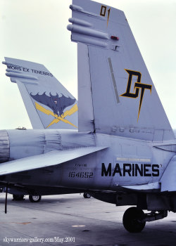 ex Tenebris」が決まり、翌年1991年2月に最初のF/A-18Dを受領した。1990年暮れと言えば、砂漠の嵐作戦が終了し、海兵隊航空はMAG-26がサウジアラビアの前進基地に移駐して、クウェートを開放した第2海兵師団を支援している時期で、アメリカ軍全体として益々中東地域にのめり込んでいく時期でもあった。FA-18Dを受領した同隊も次第に中東への派遣などで関わりを深めていく事になる。
