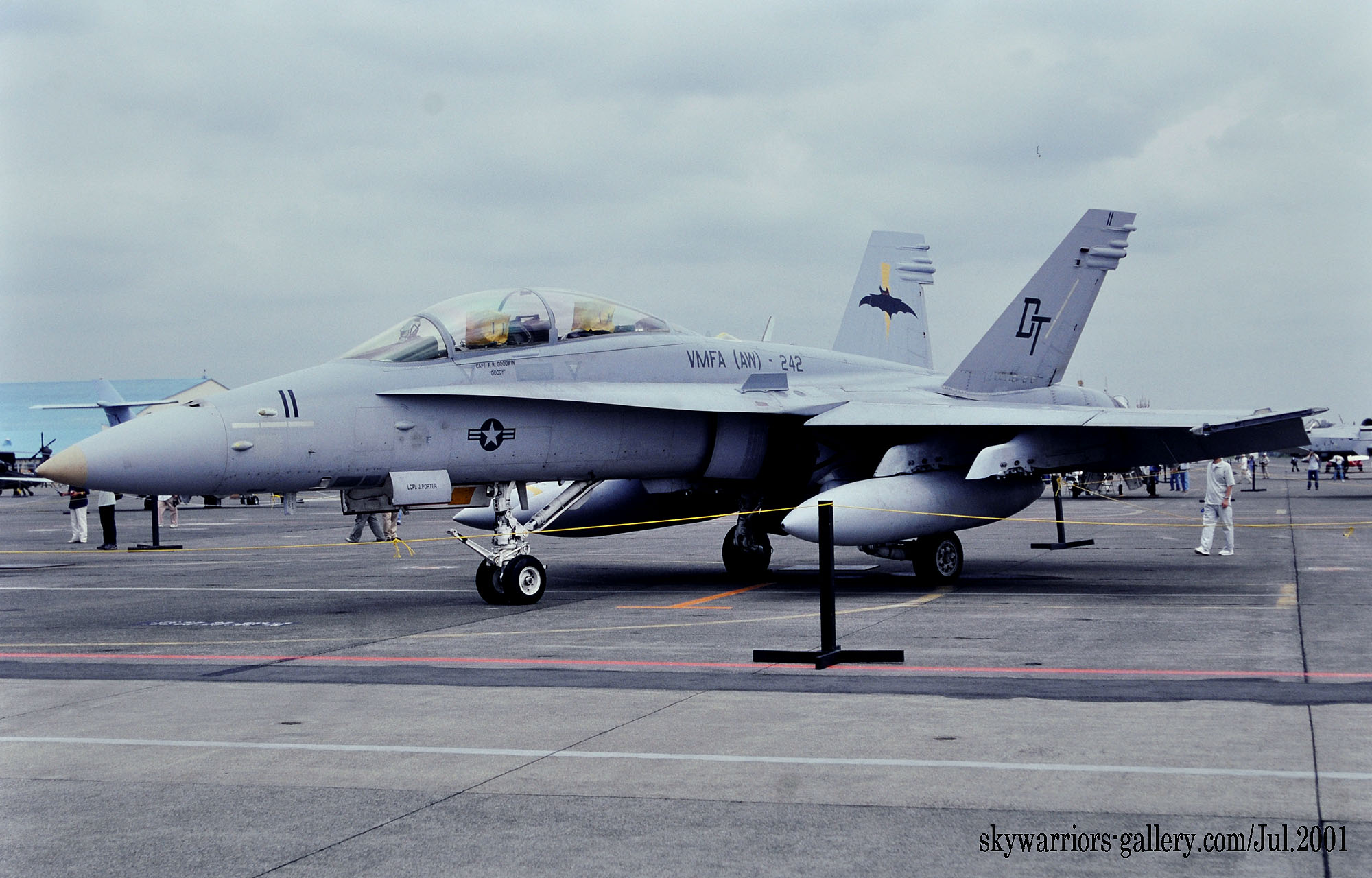↑ 2001年7月28日 厚木基地航空祭Wing-2001に展示されたVMFA(AW)-242のFA-18D/DT-11。2001年は厚木基地航空祭で”Wing-XX”と銘打った最後のショーとなった。