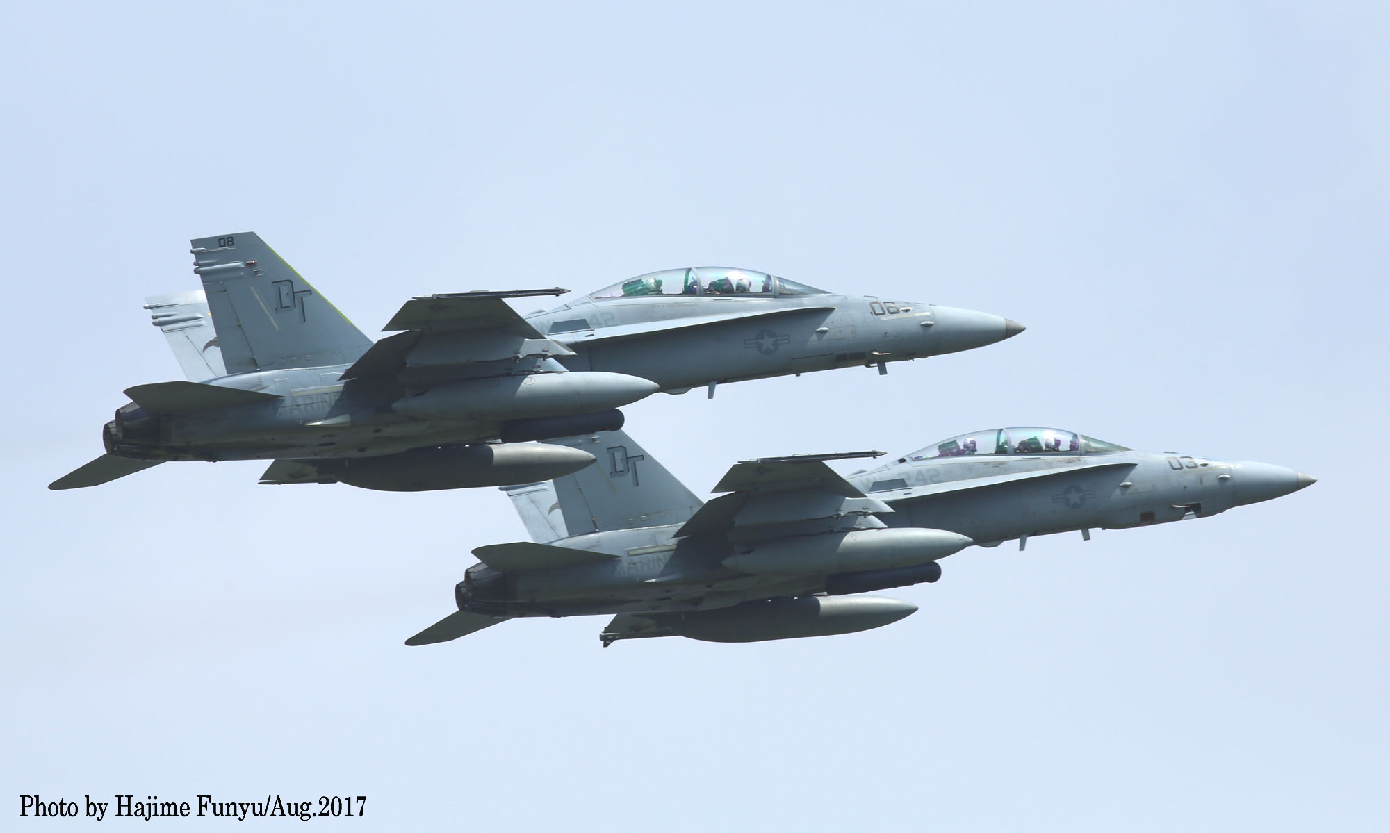 ↑ 2017年8月 真夏の厚木基地に飛来し、訓練を終えて岩国基地に戻る2機のFA-18D。
