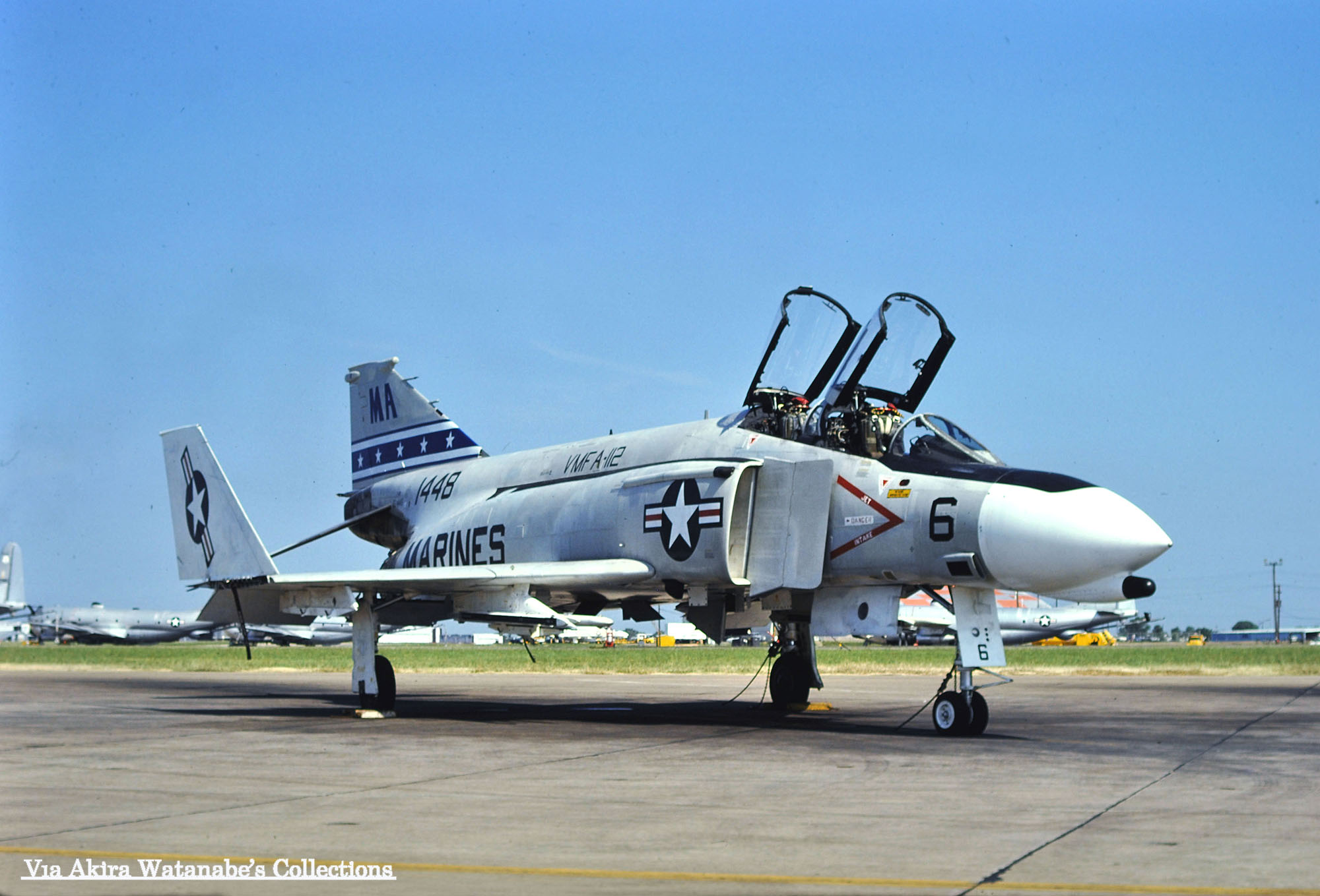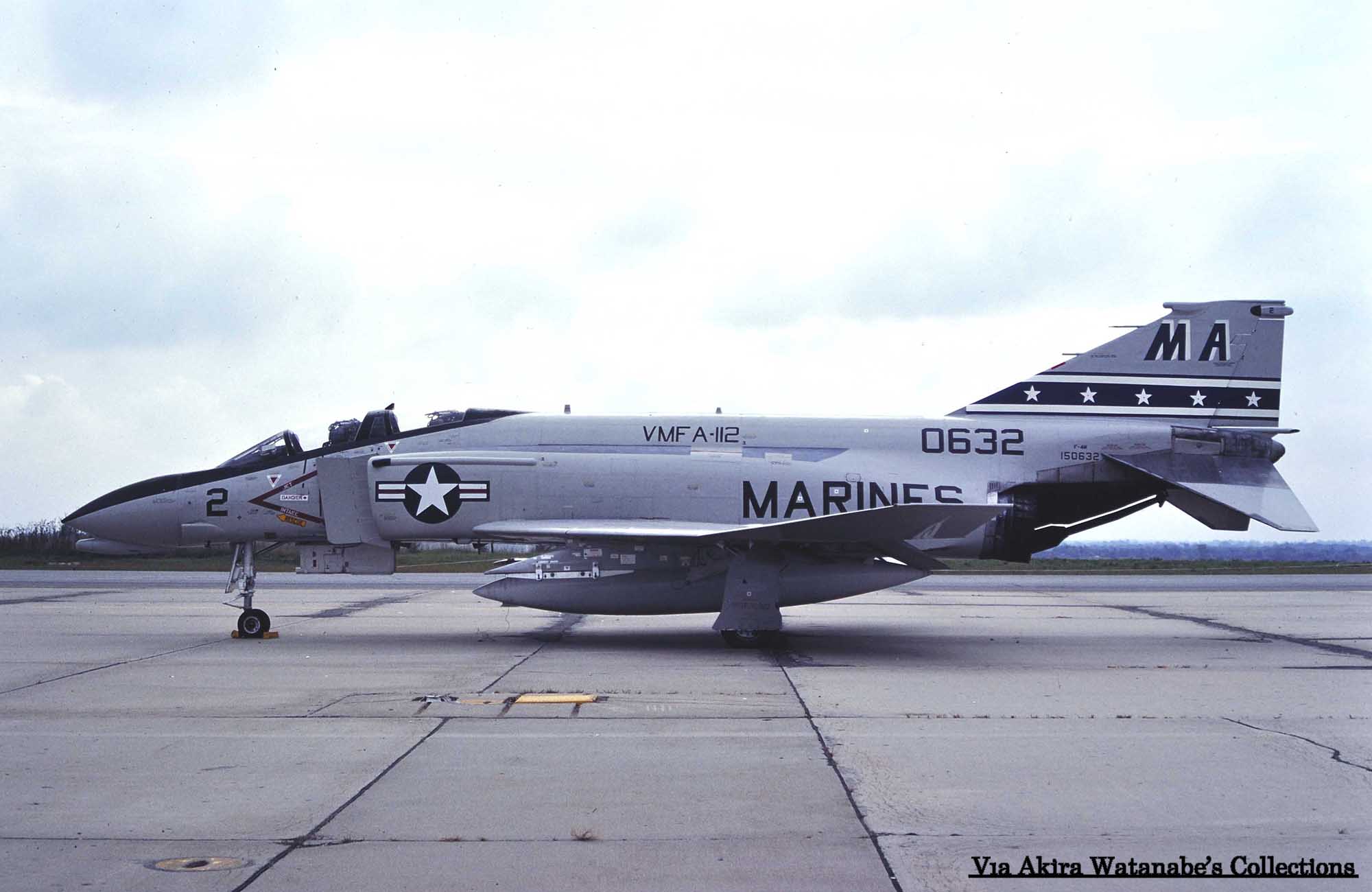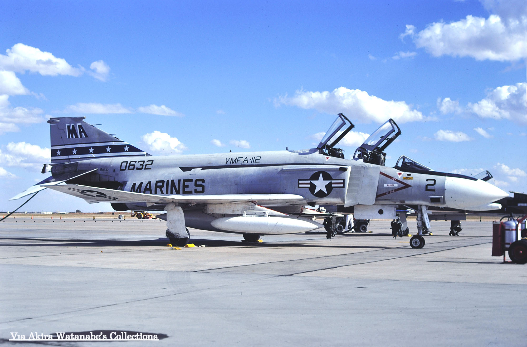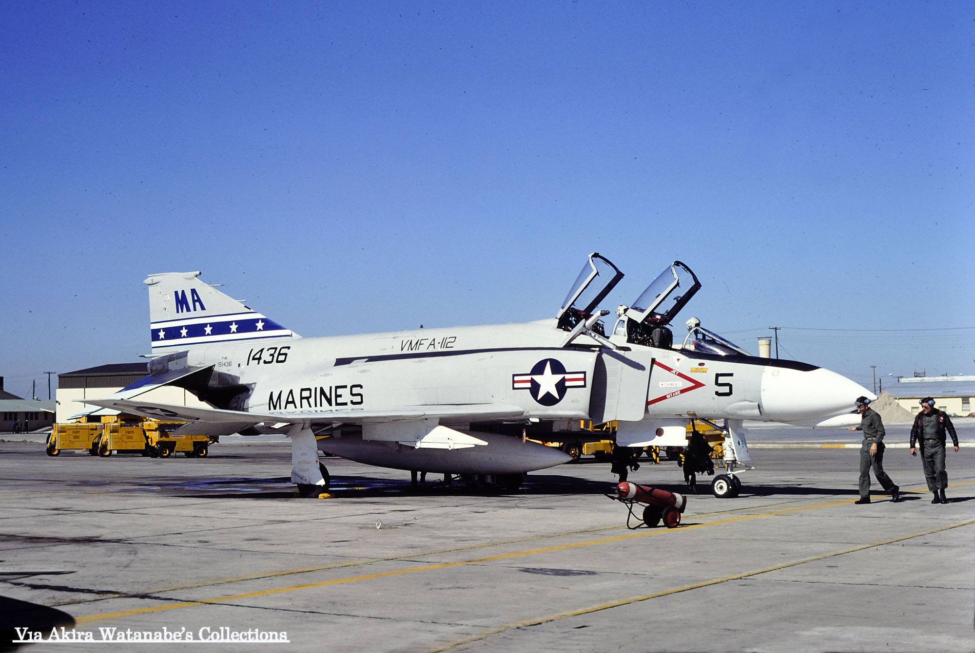 ↑ 1977年10月にカンサス州のフォーブスANGBで撮影されたVMFA-112のF-4N。この基地は現在はトペカ・フォーブス空港と名付けられ民間空港になっている。