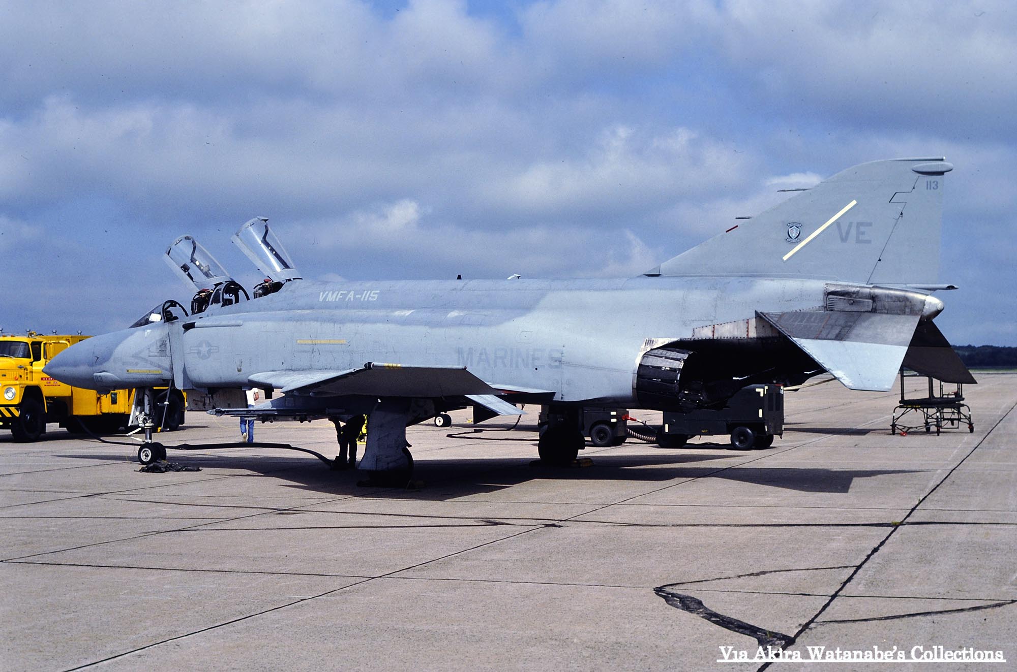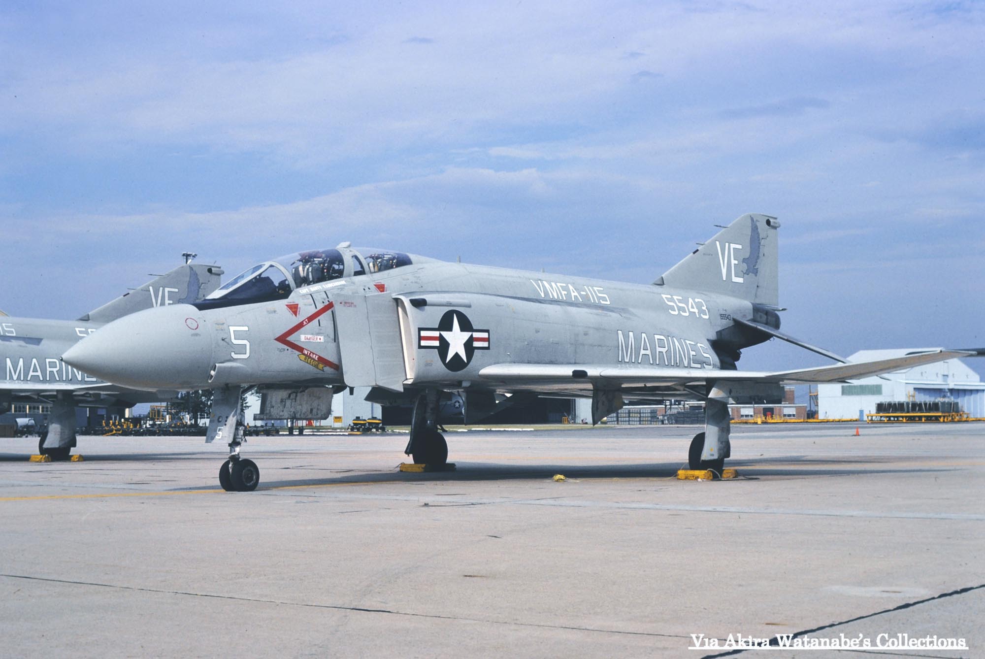 ↑ 1978年7月マクガイヤー基地で撮影されたVMFA-115のF-4J/VE-5。
