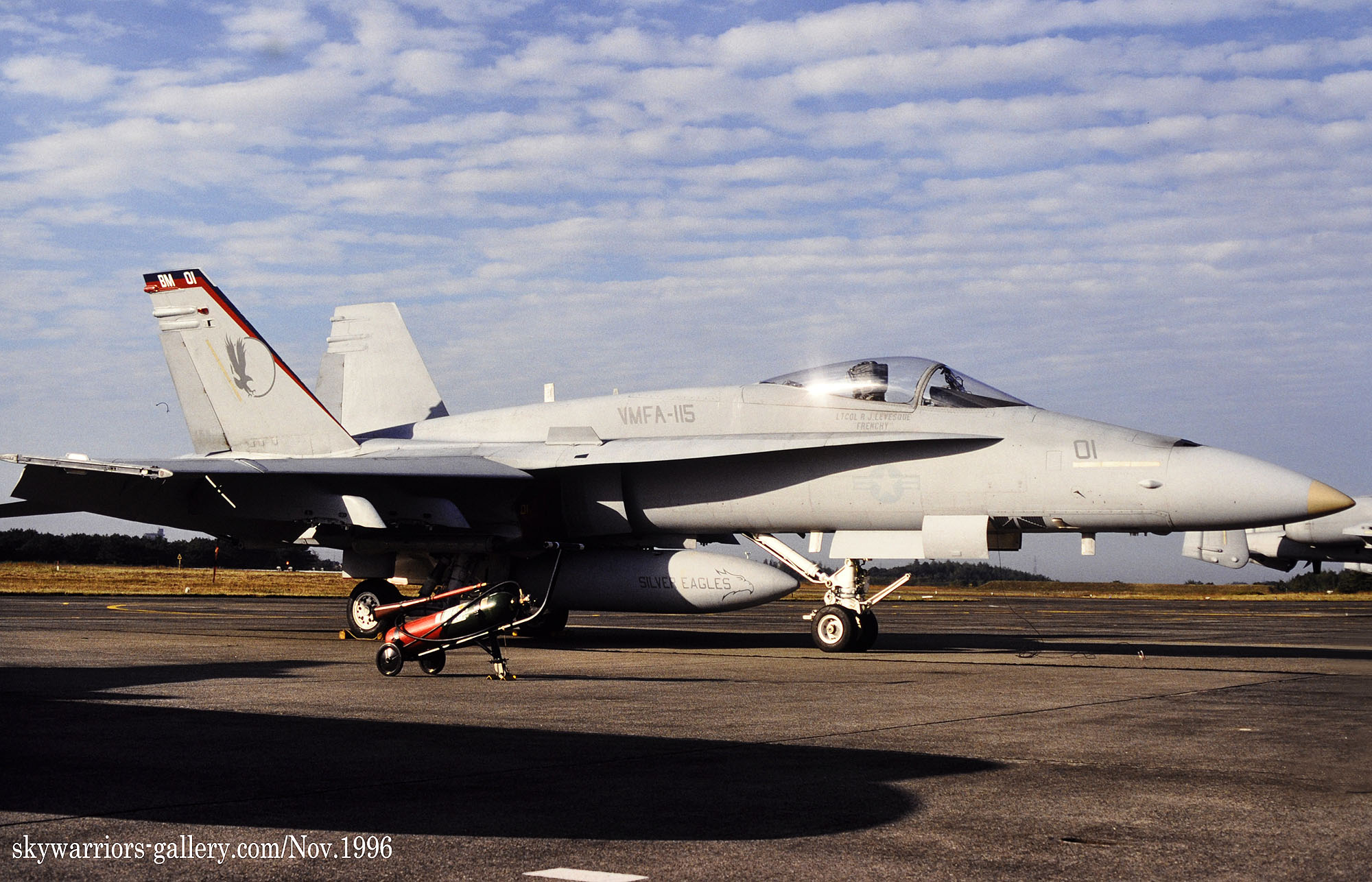 ↑ 1996年9月横田基地に展示されたVMFA-115のFA-18A/VE-01。鈴木純夫氏撮影