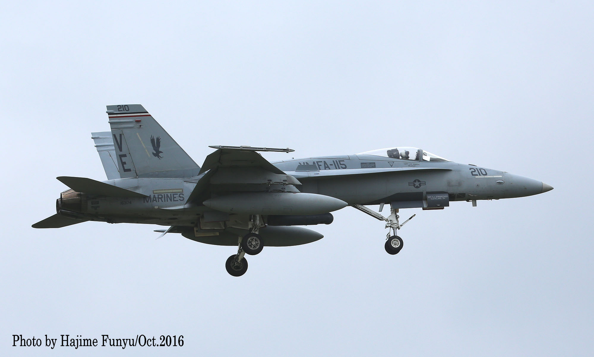 ↑ 2014年10月 岩国基地で訓練飛行を終え着陸したVMFA-115のFA-18A++
