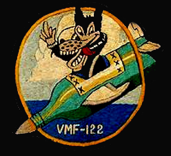 VMFA-122は、1942年3月に部隊の前身VMF-122が誕生している。この年の3月と言えば日本軍がジャワ島に上陸するなど、太平洋各地で破竹の勢いを見せていた時期である。当時部隊の前身であったVMF-122はF4Fワイルドキャッツを受領し、その後かのガダルカナルの攻略作戦に参加している。F4FからF4U-1コルセアに転換後、ヘンダーソン飛行場等をベースに太平洋戦線で35機の日本軍機を撃墜するなど実績を上げた飛行隊だ。その頃、彼らの部隊名は「キャンディ・ストライパーズ」。この名前は後に看護助士の総称にもなったそうだが、赤と白の縞模様が.由来である。2度目の太平洋方面派遣では激戦となったぺリリュー島攻略戦を航空支援するもので、同隊はナパーム弾とロケット弾を用いて支援したとされる。終戦時点ではぺリリュー島の飛行場に駐留していた。戦後 チェリーポイント海兵隊基地に戻っている。