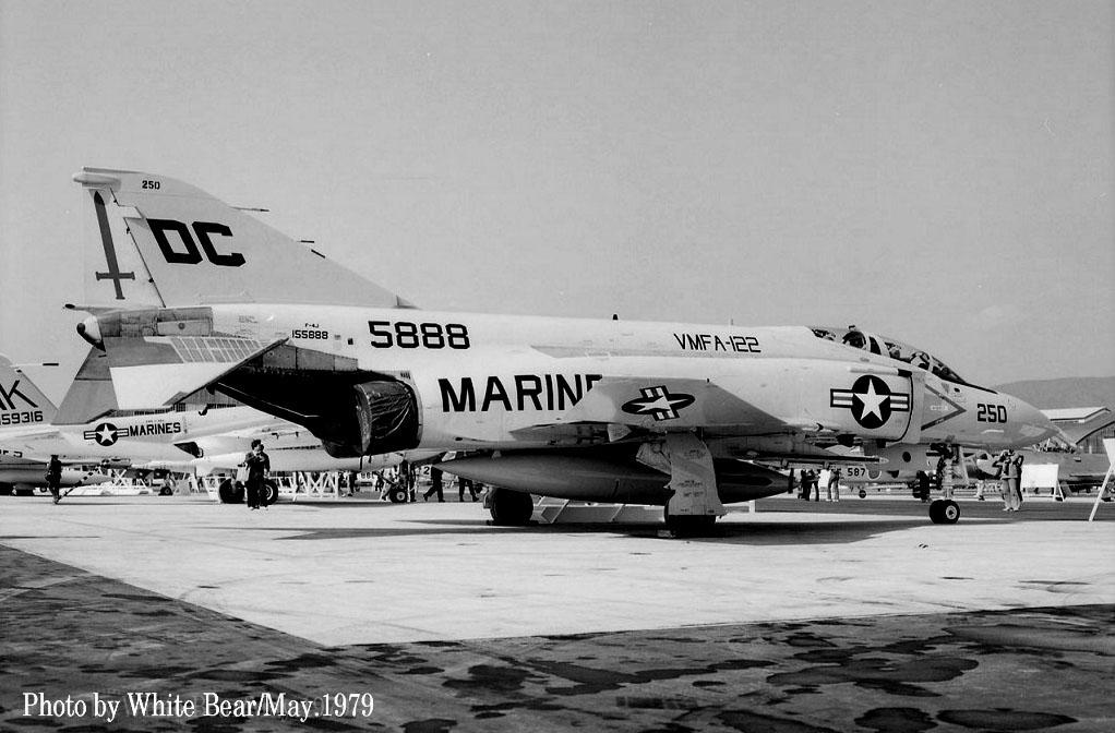 ↑White Bearさんが1979年5月の岩国基地航空祭で撮影されたVMFA-122のF-4J/DC-250。Modex-250は当時の司令官指定機だったはずであるが、塗装の違いは無かった。VMFA-122のF-4Jの日本国内の展示はこの年が最初で最後となった。