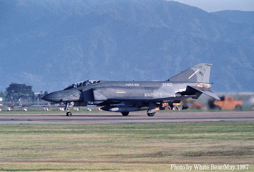 ↑ 1981年9月 三沢基地で撮影されたVMFA-212のF-4J。この年確か三沢基地では同隊が参加した日米合同訓練が開催されたはずである。
