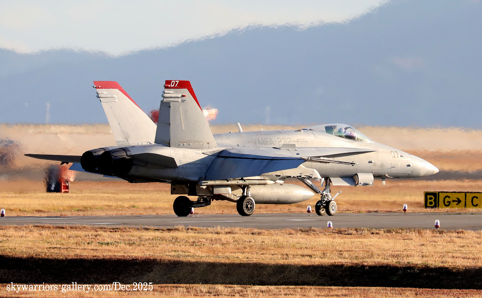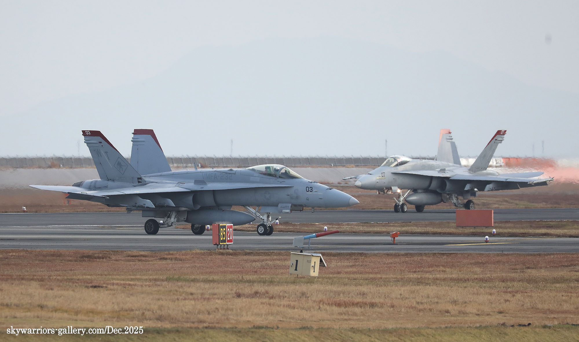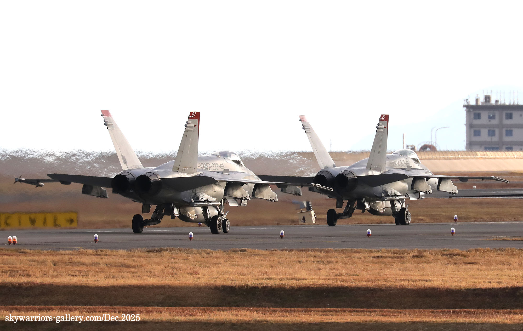 レッドデビルス創設100周年での岩国基地派遣、恐らく同隊のFA-18C/Dとしては最後の派遣となる今回、前項のWhite Bearさんの写真に刺激され、不肖私めも柳の下のドジョウを狙って12月の寒い岩国基地に展開したのであった。結果から申し上げれば”半分撃沈を食らって”帰ってきた・・・何とお目当てのWT-00/01が、私の展開した週は1度も飛ばなかったのである。其の他の機体はそこそこフライトしてくれたのだが、フルカラーの2機については横田基地飛来時も所用で行けなかった事に続き、縁が薄いのだと割り切るしかない。12月の岩国基地は天候が良かったが光線状態が悪い、特に午前から午後1時ごろまで厳しい逆光である。但し 2時以降太陽の傾きで機体の真横に強い光が当たり、綺麗な写真が撮れることがあるが、2時間余りの短い時間帯だけとなる。そんな初冬の岩国基地の様子をVMFA-232の活動を含め本項でご紹介したい。(2025年12月 記)
