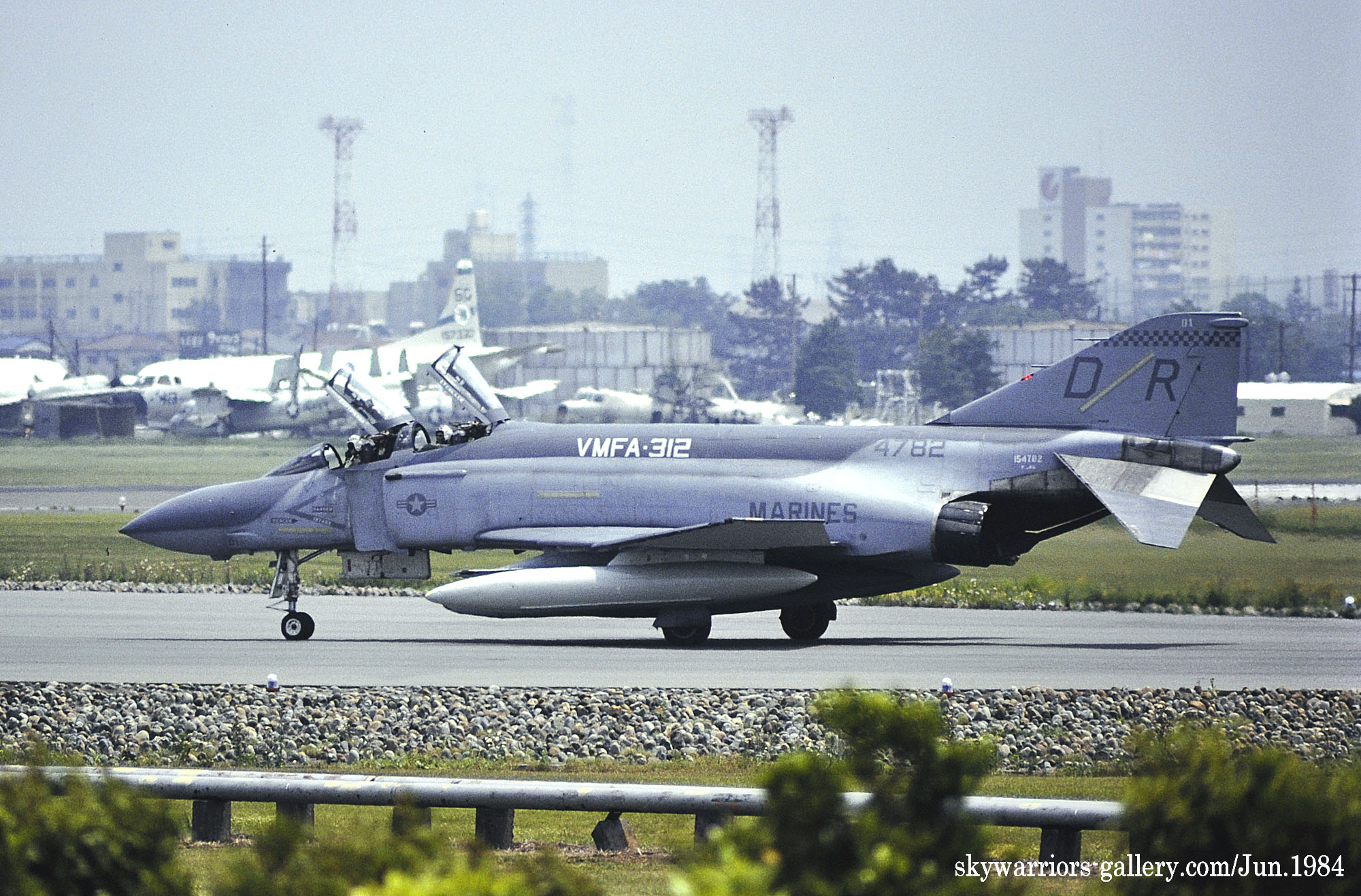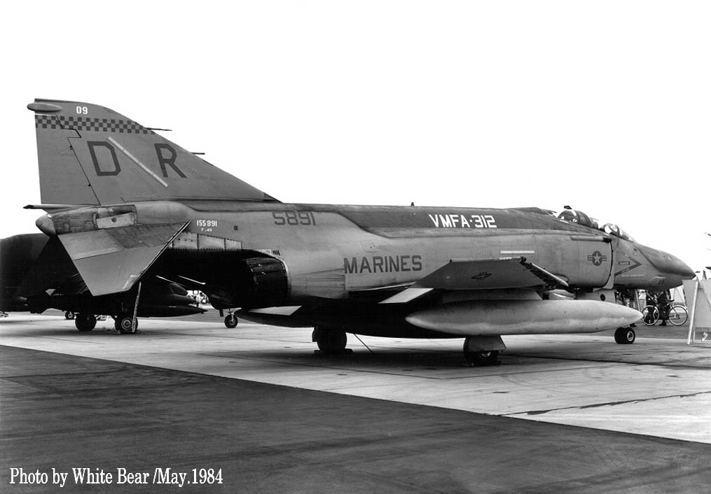 ↑ 1984年10月にアメリカ本国で撮影されたVMFA-312のF-4S/DR-11。同年7月まで岩国基地に派遣されていたが、当時は半年のローテーションで本国に帰還していた。