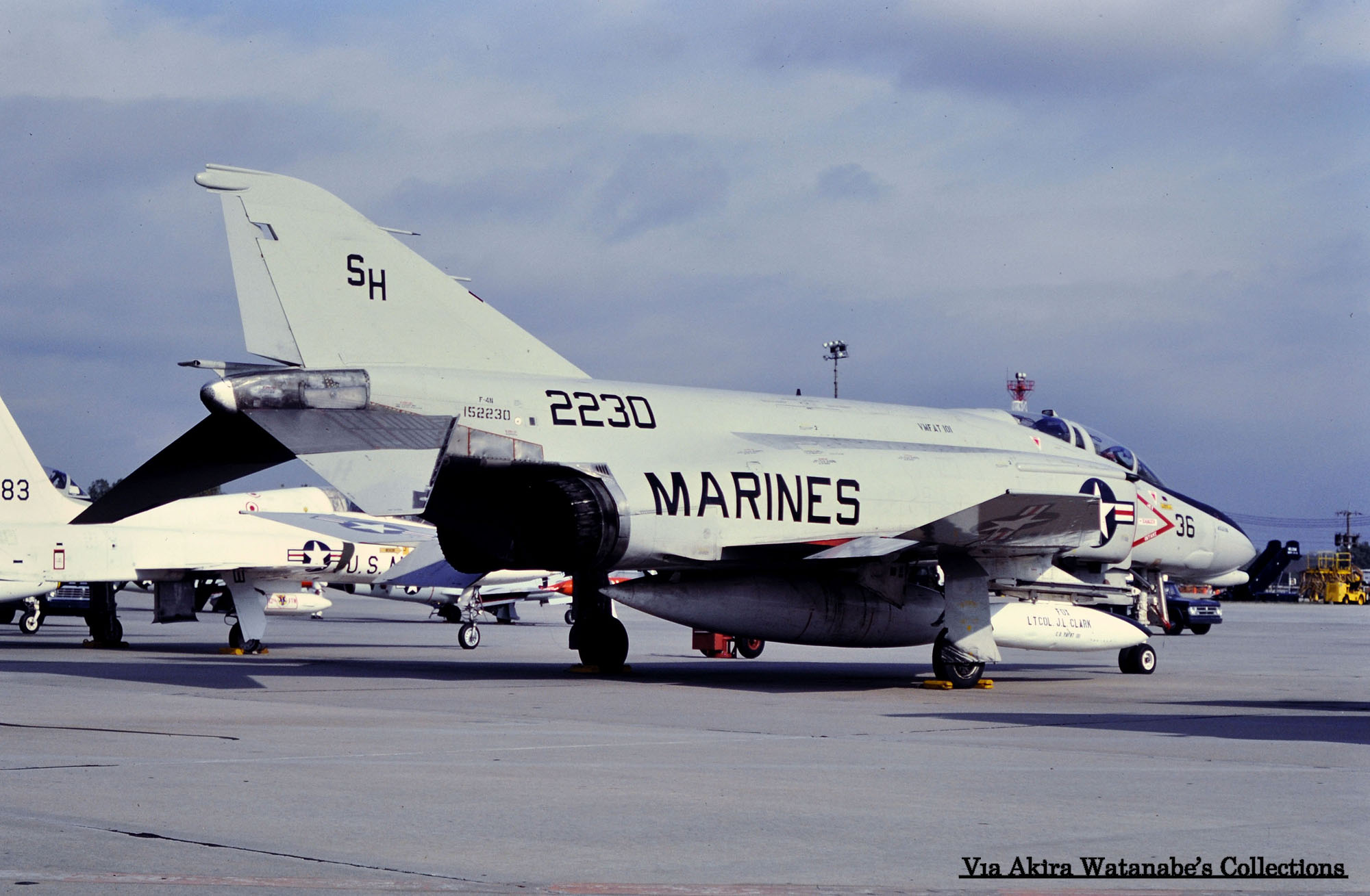 下掲載のi一連の白黒写真は1980年にMCAS Yumaにて撮影したF-4N/Jである。訓練担当部隊の為、当然ではあるがF-4BからN型,J型を経て最後のS型まで全ての機種を運用した飛行隊であった。1980年代、所属機の塗装はロービジの波を受け既にカラーマーキングは無く「SH」のレターのみになっていたが、部隊創設の初期はグリーン色を基調にしたセンスの良いマーキングを施しており注目された飛行隊。(2002/6/14 記)