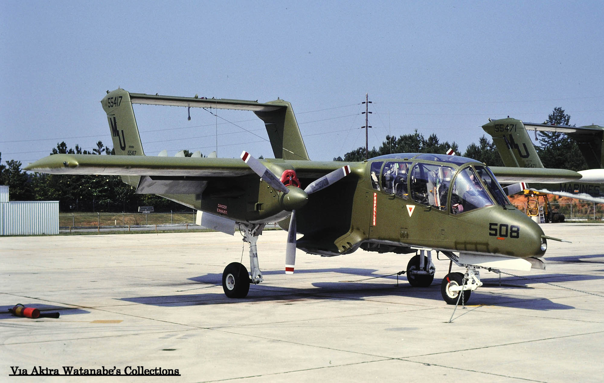 ↑ 1980年2月 アリゾナ州ユマ海兵隊基地に飛来したVMO-4のOV-10A/Bu.No.155427。この機体は、1973年には沖縄のVMO-6に所属し”WB-01”の機首番を付けていた。