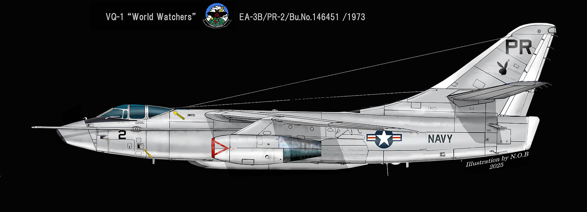 ↑ 1973年頃、PRのテールコードに因んで、Playboy Rabitのラビットヘッドを尾翼に書き入れたVQ-1のEA-3B/PR-2/Bu.No.146451