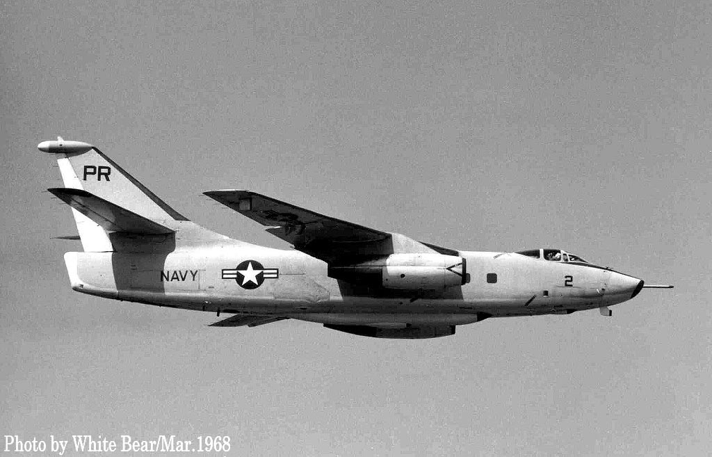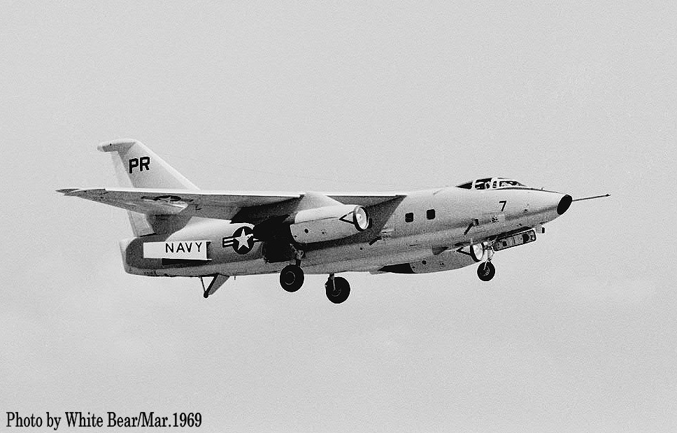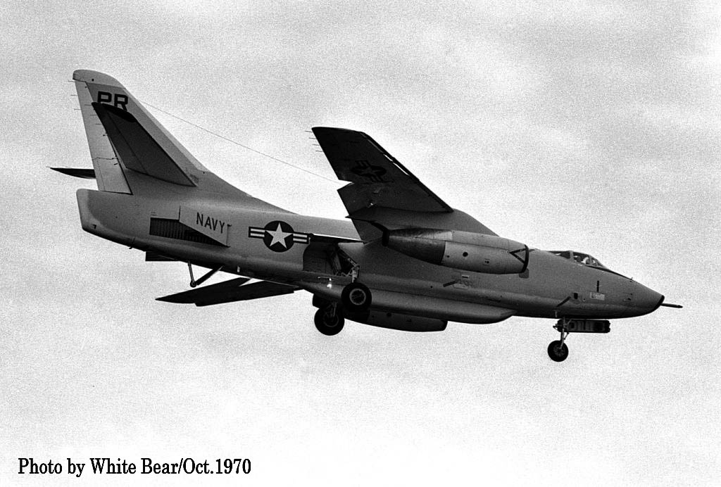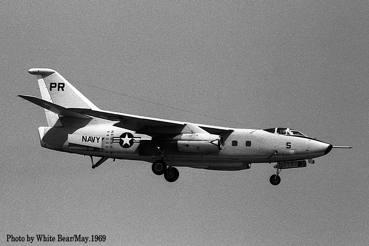 ↑ 同じく1965年8月10日厚木基地北側から着陸するVQ-1のEA-3B/PR-5/Bu.No.146457。本機は1986年7月に退役した。