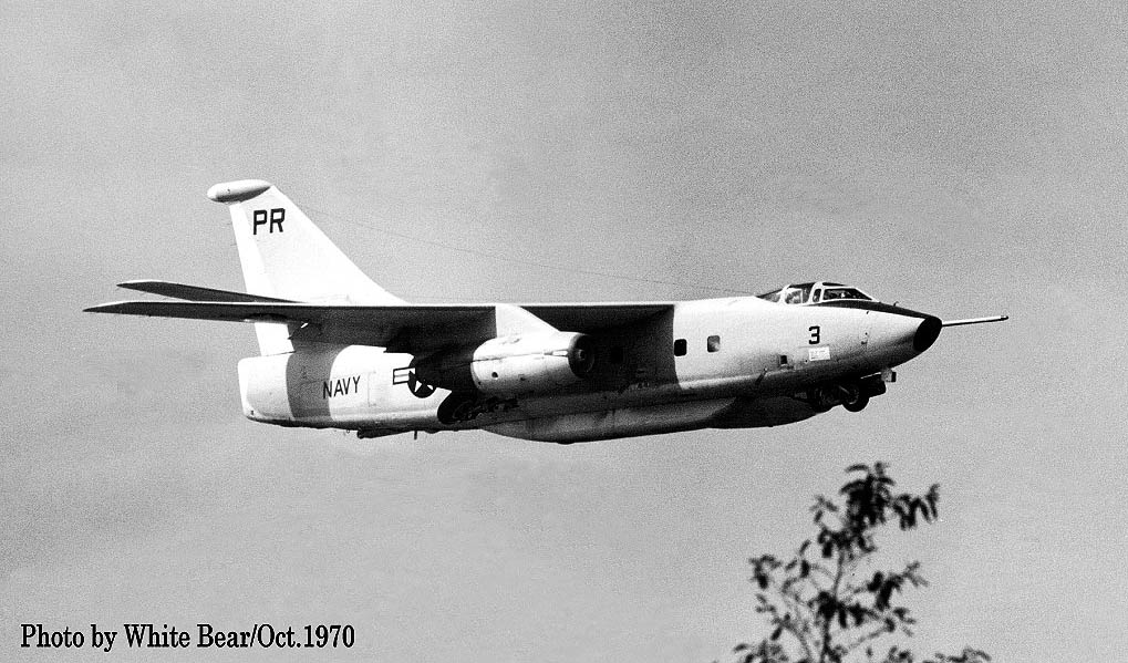 ↑ 1970年10月10日厚木基地を北側に向け離陸するVQ-1のEA-3B/PR-3 Bu.No.不明