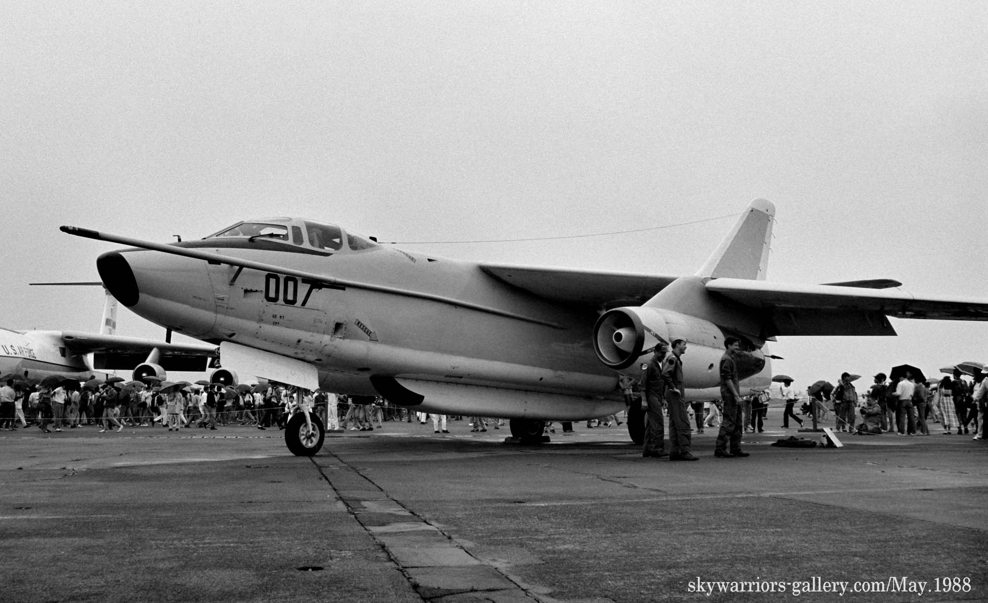 ↑ 1988年厚木基地の航空祭に展示されたVQ-1のEA-3B/PR-007/Bu.No.144849。厚木基地で最後のA-3展示となった機体。