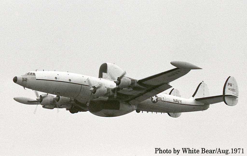 ↑ 1971年8月 厚木基地で撮影されたWC-121N/PR-52/Bu.No.143205 。1971年7月VW-1の解体に伴いVQ-1へ移籍された機体。