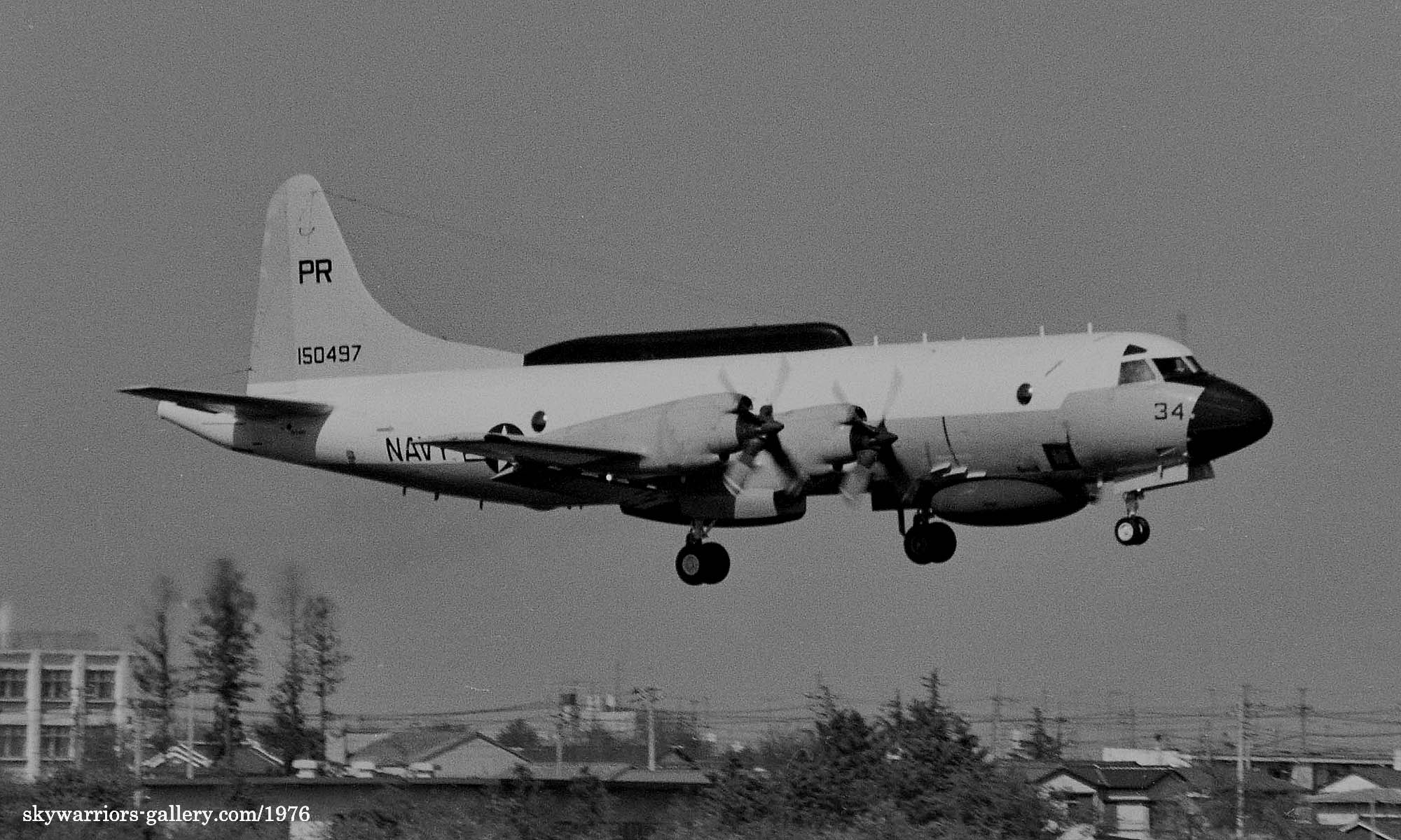 ↑ 1976年厚木基地のR/W19に向かう為タキシーするEP-3E/PR-34/Bu.No.150497。以前はずっとEP-3Bだと思っていたが、実は1972年にP-3Aから改造されたEP-3E DEEPWELLと言うタイプだ。PR31/32までがEP-3B、それ以降のPR-33/34/35/36は、全てEP-3Eである。
