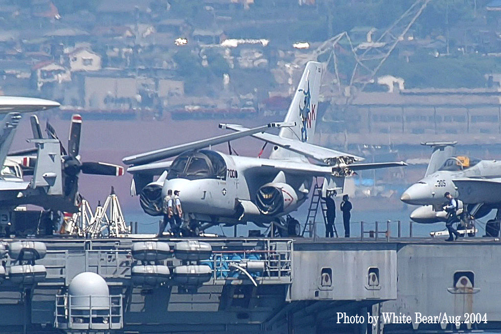 2004年8月21日 White Bearさんが佐世保港で撮影したアメリカ海軍原子力空母USS ステニス艦上のS-3B/BU.No.160161