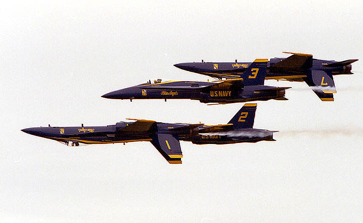 右の写真が、ドリスコル中佐操るフライトリーダー#1 あいにく天候が良くなかったがその分 低高度での演技で観衆を沸かせた。