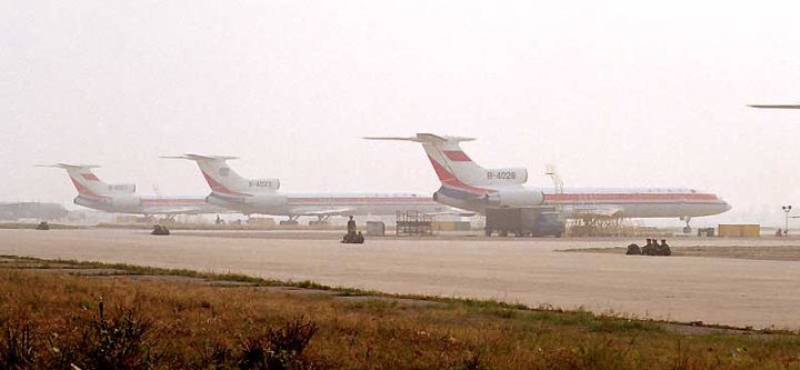 エプロンまでは、普段民間空港では見ることのできないツポレフ製の旅客機が、10機ほど並んでいた。これらは、空軍第34航空師団102連隊に所属していると考えられている輸送用の航空機であり ボディの塗装は民間航空会社”中国聯航”となっているが 完全に空軍の傘下にある機体で 人員輸送を担当している。南苑空軍基地は、この他にカナダ製のカナディア RJ 200ERなどが確認されている。私も仕事中に確認できた機種は、TU-145MとRJ-200ERで フライトしている姿を見ているが この基地は戦闘機の運用基地ではなく 輸送機部隊の基地であり北京市郊外に少なくとも3箇所はこうした機能の基地があることは確認できた。北にある昌平の空軍基地も同様の機能を持った基地らしい。