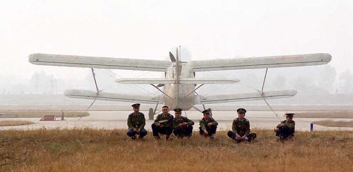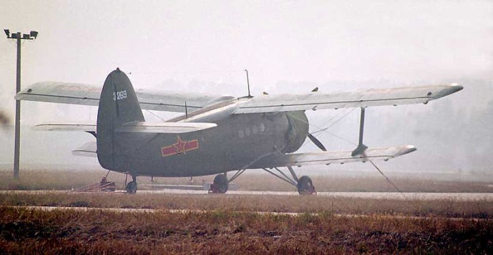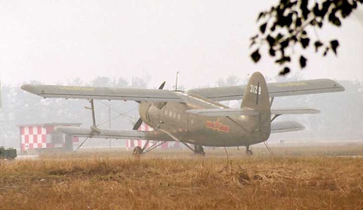基地に入る際 一番気にしたのは、カメラの持込が可能かどうかだったが、これは訪れた一般人が皆関心を持っていたことで 私の周りの人も空軍の兵士に盛んに この点を確認していたが、問題ないようだった。ただし 私のように小さいながら300oレンズを持ち込んだらチェックを受けるかと思いきや まったく問題なし。私はここに赴任する際 わざわざ小型の300oを購入して持参したが 何と白レンズ付きの立派なカメラを持ち込む人もいて 某国の都市部の人々の生活レベルは確実に欧米並みに近づいている。こうなったら 私も堂々と撮影しようと決意 1キロ以上先にあるエプロンまで歩く間に これらの機体を一機一機カメラに収めていった。ポプラの林の間からは、下の写真のような機体An-2も見ることができた。