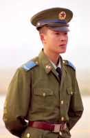 我々は車と飛ばし まず軍の正門まで行くことにした。正門に着くと 正門横の壁に”本日のフライトは、午後2時に延期”と汚い紙になぶり書きしてあった。正門の兵士に今日の入場券は何処で売っているのか聞いてみると 「あそこの売店」と正門横のタバコ販売店みたいな小汚い小屋を指差した。早速 その店に入ってみる。一人の老人が「あんたら 切符ほしいの?あるよ、でも380元のしか残ってないな・・」 駐車券は何処で手に入れるの? 「あぁ〜駐車券かい 4枚入場券買ったら1枚プレゼント・・・」 バカヤローそんな高い券4枚も買えるか!と心の中で叫んでいると 運転手君曰く「おじちゃん そんな事言わないで 2枚買うから 頂戴よ・・・」 おじちゃん「まぁ いいか、そんならあげるよ」・・・何と言うやり取りだ。決め事はあっても 交渉しだい。こんなところが中国らしい、またまた 難問クリアーである。入場券と駐車券があれば もう特権を得たも同然である。ただただ時間の経過を待つのみとなった。しかし まだ8時にもなっていないこの田舎町で どうやって時間つぶしのよ・・・もう!我々は町をうろちょろ走り回りケンタッキーで朝食を取り さらに近くのサウナ風呂兼カラオケルームを見つけ営業時間外と断られるも 強引に入れてもらって昼過ぎまで時間をすごした。何でも交渉しだいである。ちなみに私の運転手君 まったく日本語はできないので 会話は北京語であるが、最近では交渉ごとを私がする所を見て「中国人と変わらないね」と評価する・・・嬉しくは無いが。