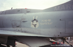↑ 松野氏撮影による1989年岩国基地祭におけるOA-4M WA-06/154645 。胴体後部に新たなマスコット武者兜を付けたブルドック君。