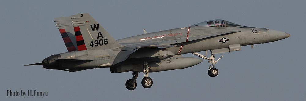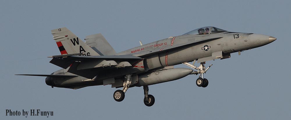 ↑ フニュ君撮影のFA-18C。VMFA(AW)-242の所属ながらH&MS-12の懐かしい”WA”レターを書き込み回顧趣味的なマーキングを施されたFA-18D。