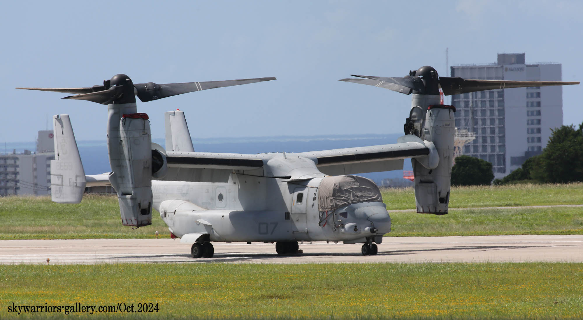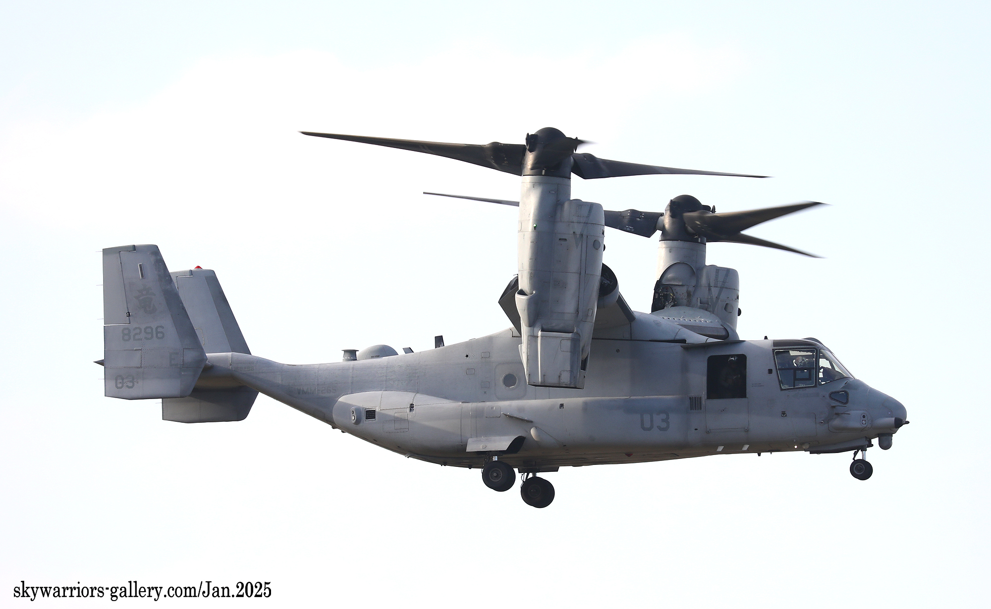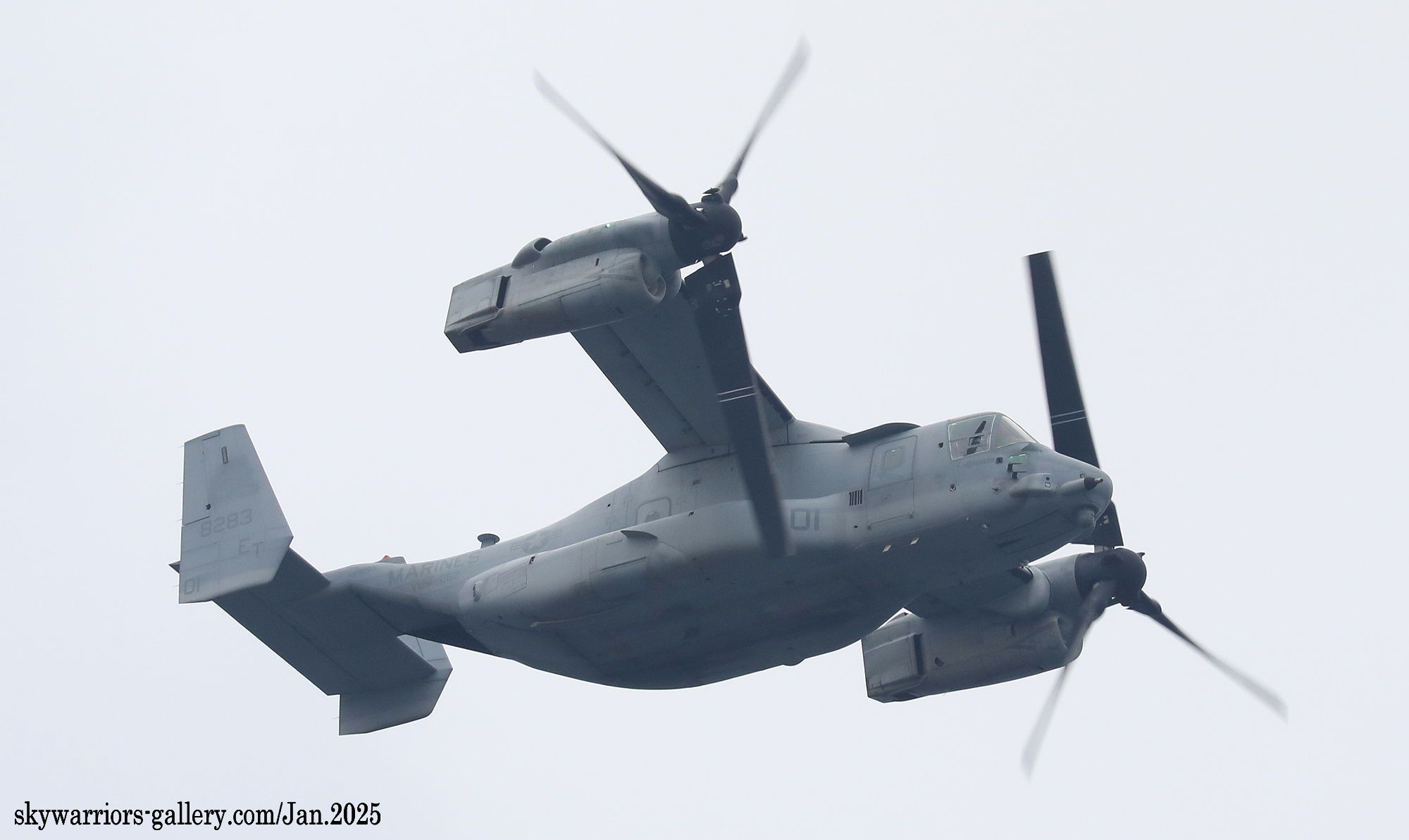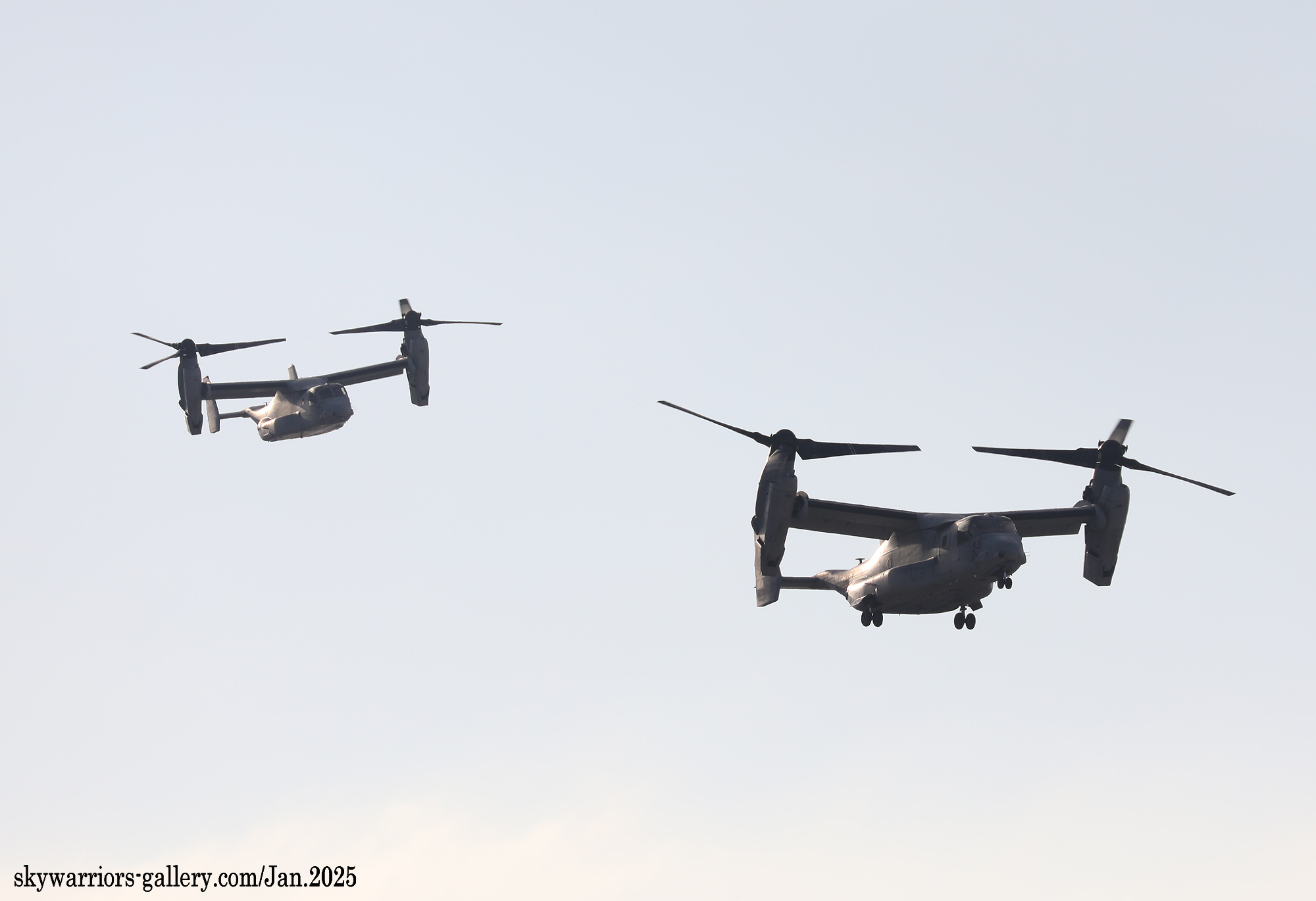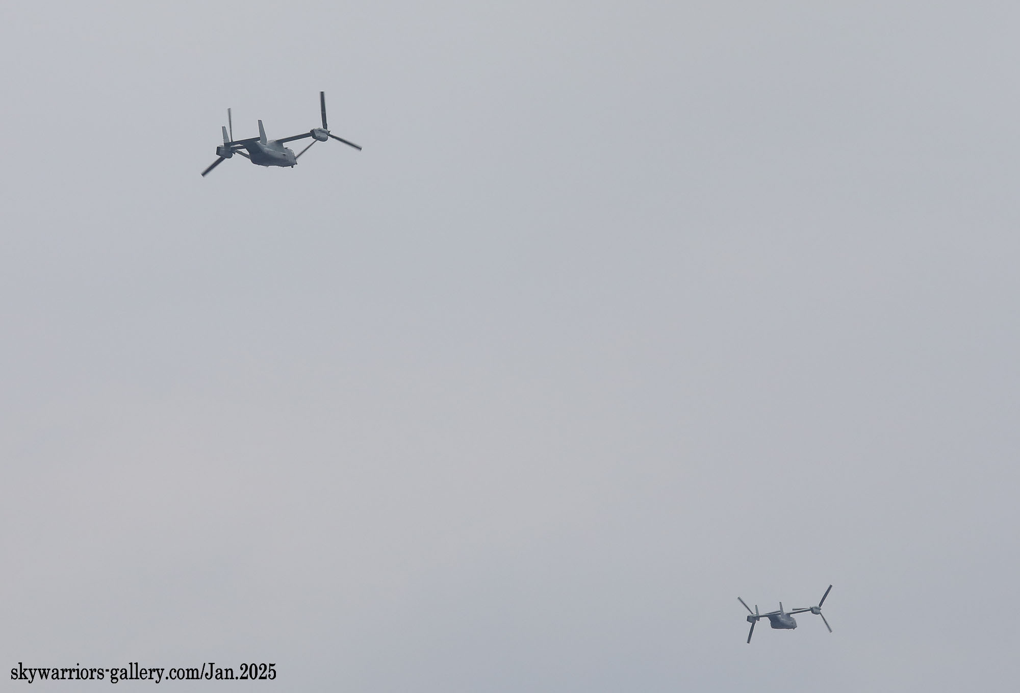 ↑ 2025年1月某日 午後に沖縄本島北部演習場へ訓練に行った2機のMV-22が夕方普天間基地に戻ってきた。VMM-265/EP-03/Bu.No.158296