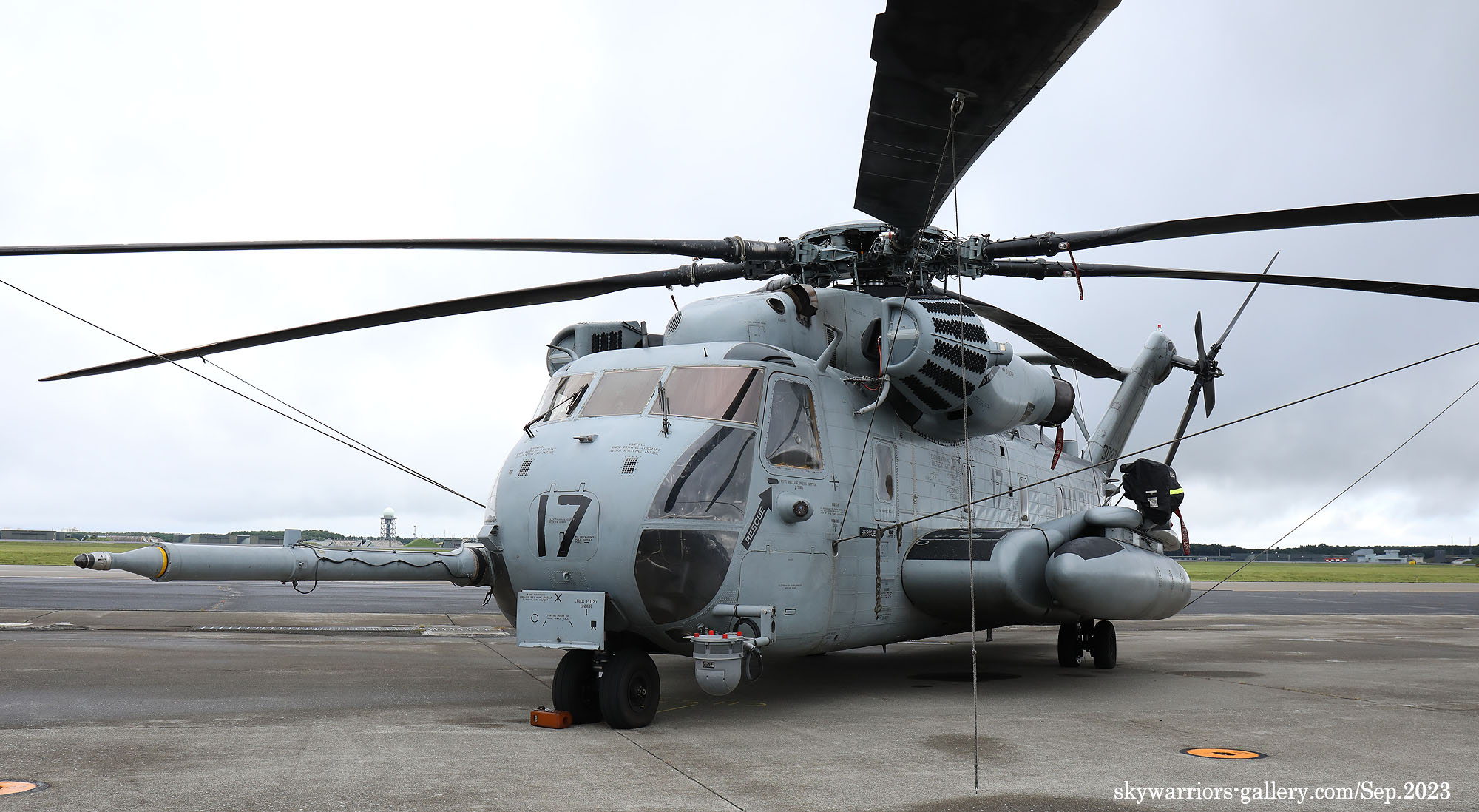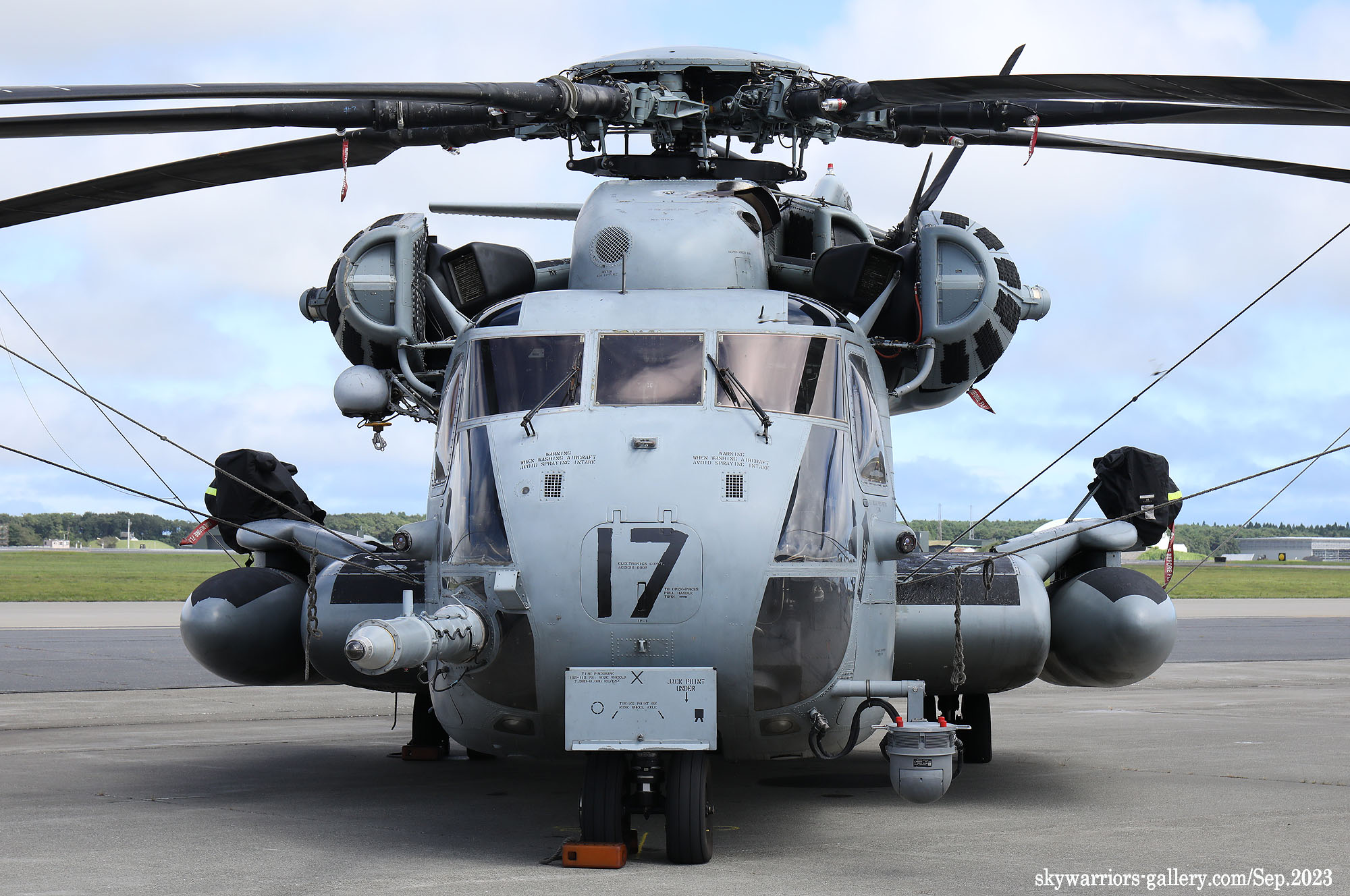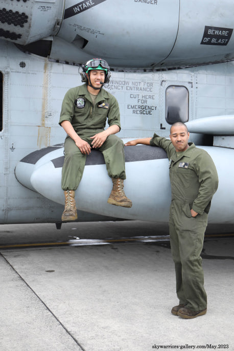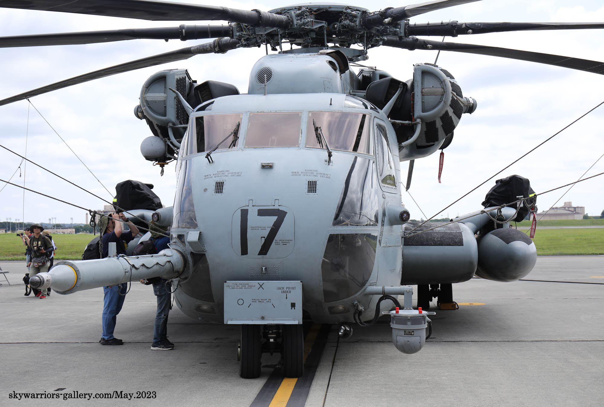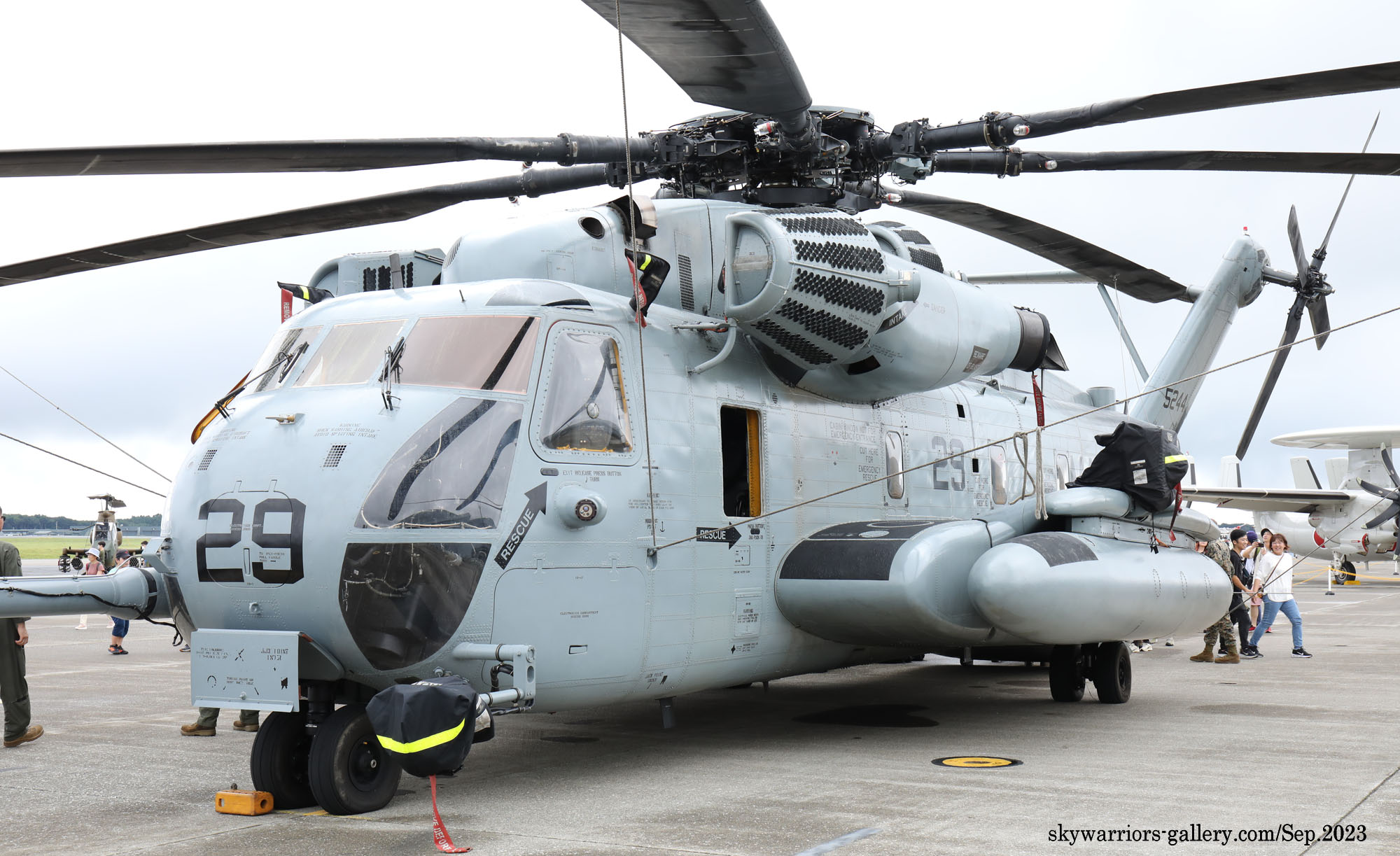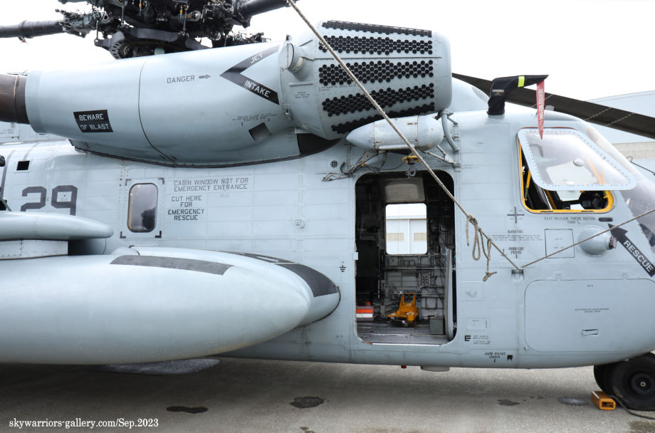 上の写真とは所変わって、2023年9月10日三沢基地公開に展示されたHMH-462のCH-53Eである。Modex 24&17番のペアは、横田公開日と同じメンバーではあるが、三沢基地公開日前日に空港ターミナルで外来機を待つ我々にとって、大きなプロペラ音を響かせて降りてくれたシ―スタリオンは嬉しい存在だった。今回は、ロープの外側の展示機エリアに17番機、機内展示を含めたディスプレィ用に24番機が使われた。横田基地であったメンバーのクルーとも再会である。
