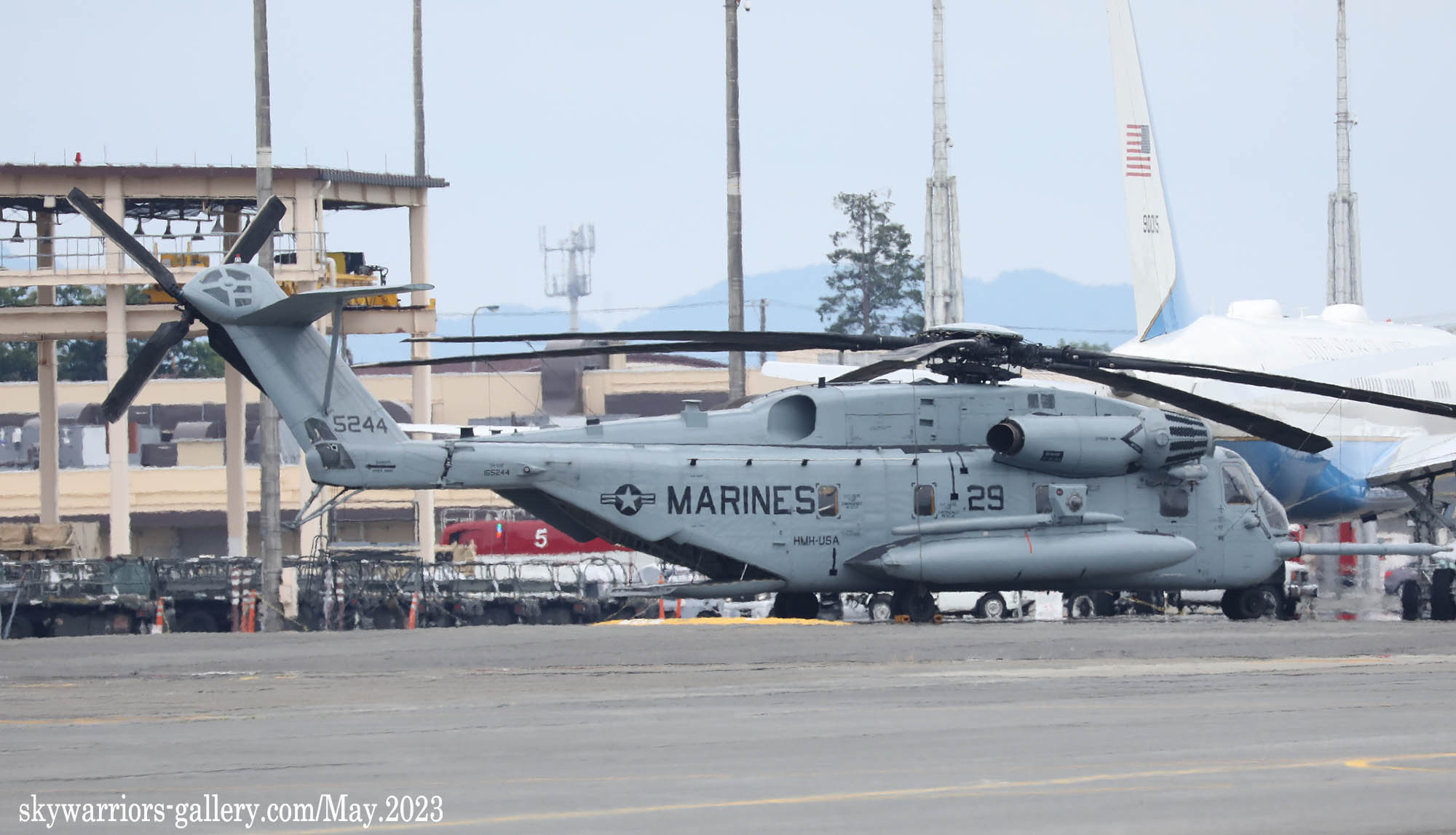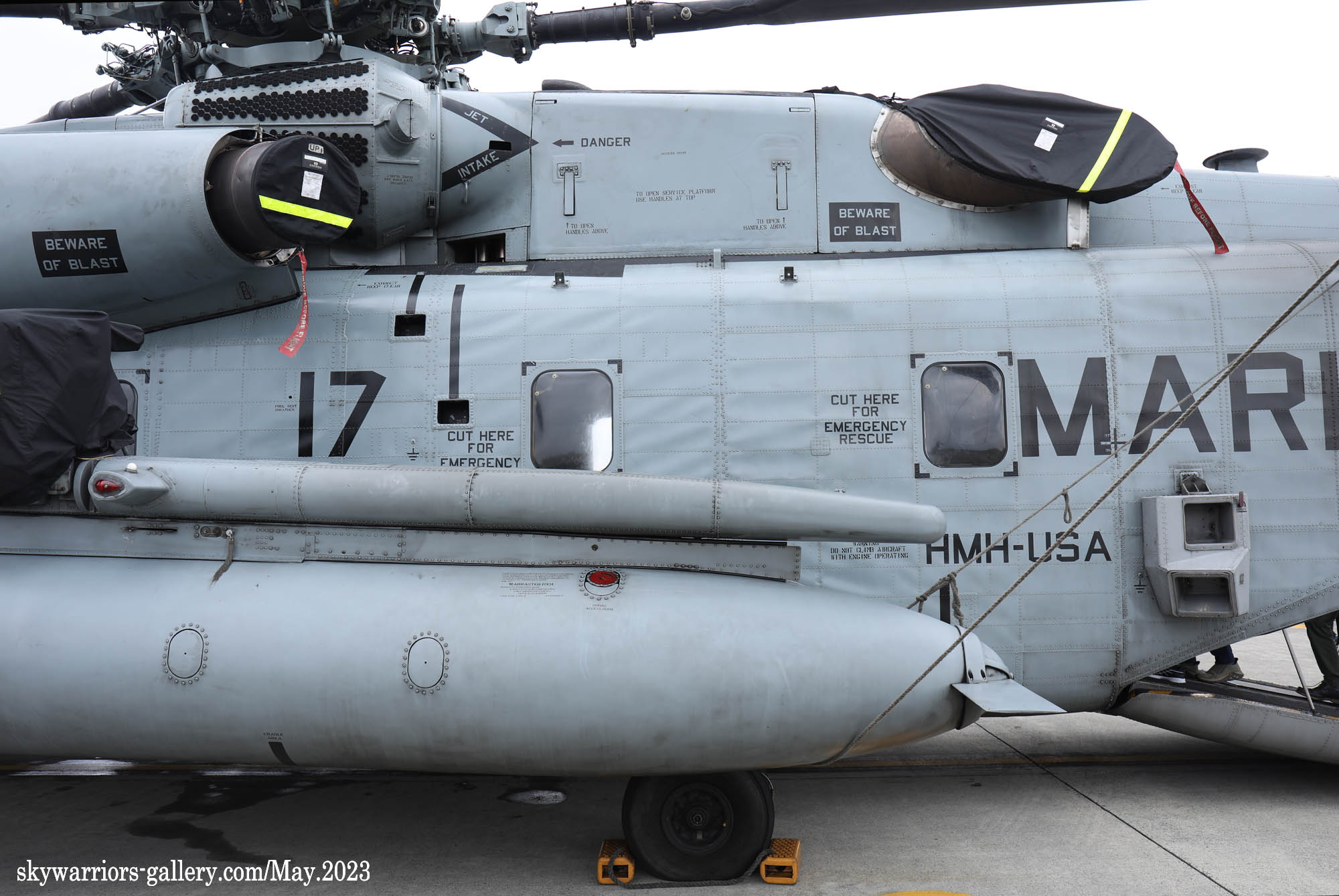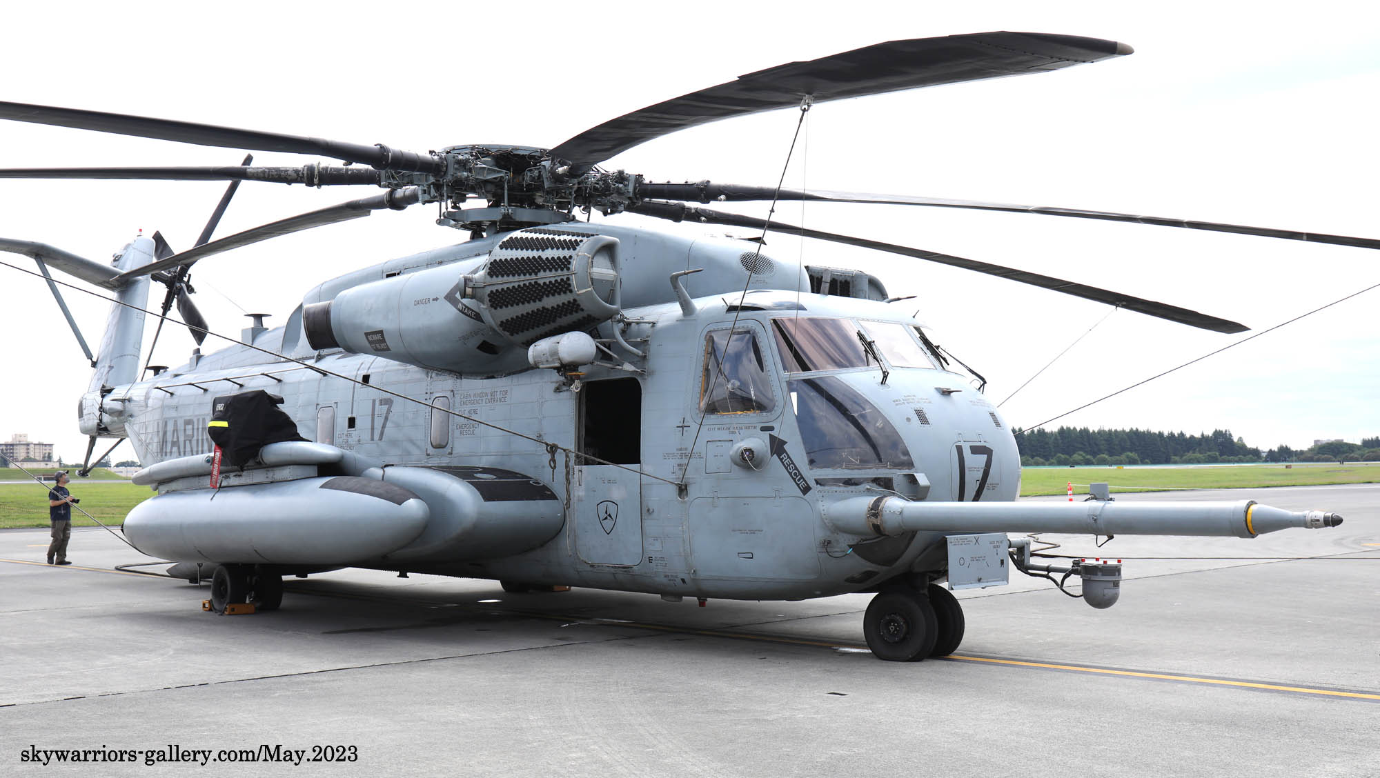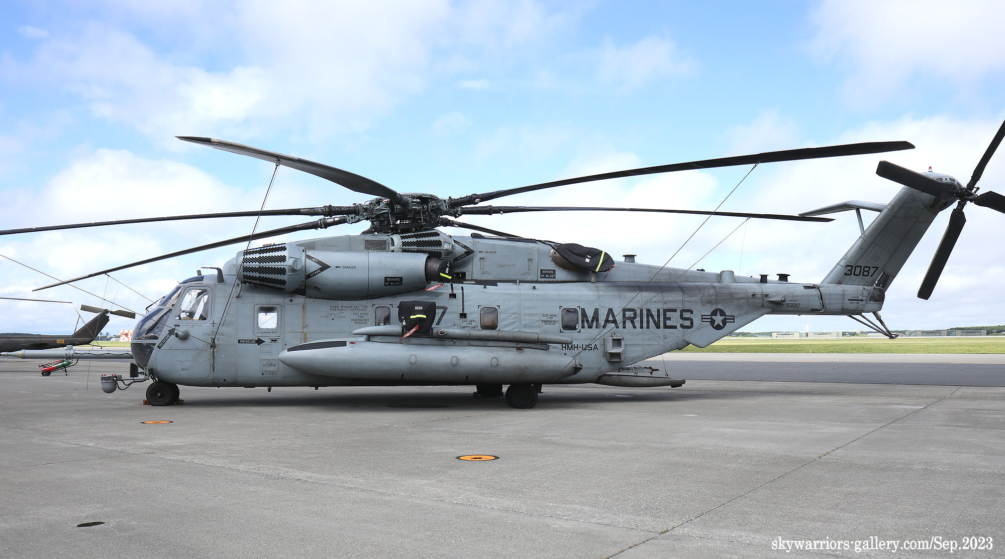 上の写真とは所変わって、2023年9月10日三沢基地公開に展示されたHMH-462のCH-53Eである。Modex 24&17番のペアは、横田公開日と同じメンバーではあるが、三沢基地公開日前日に空港ターミナルで外来機を待つ我々にとって、大きなプロペラ音を響かせて降りてくれたシ―スタリオンは嬉しい存在だった。今回は、ロープの外側の展示機エリアに17番機、機内展示を含めたディスプレィ用に24番機が使われた。横田基地であったメンバーのクルーとも再会である。
