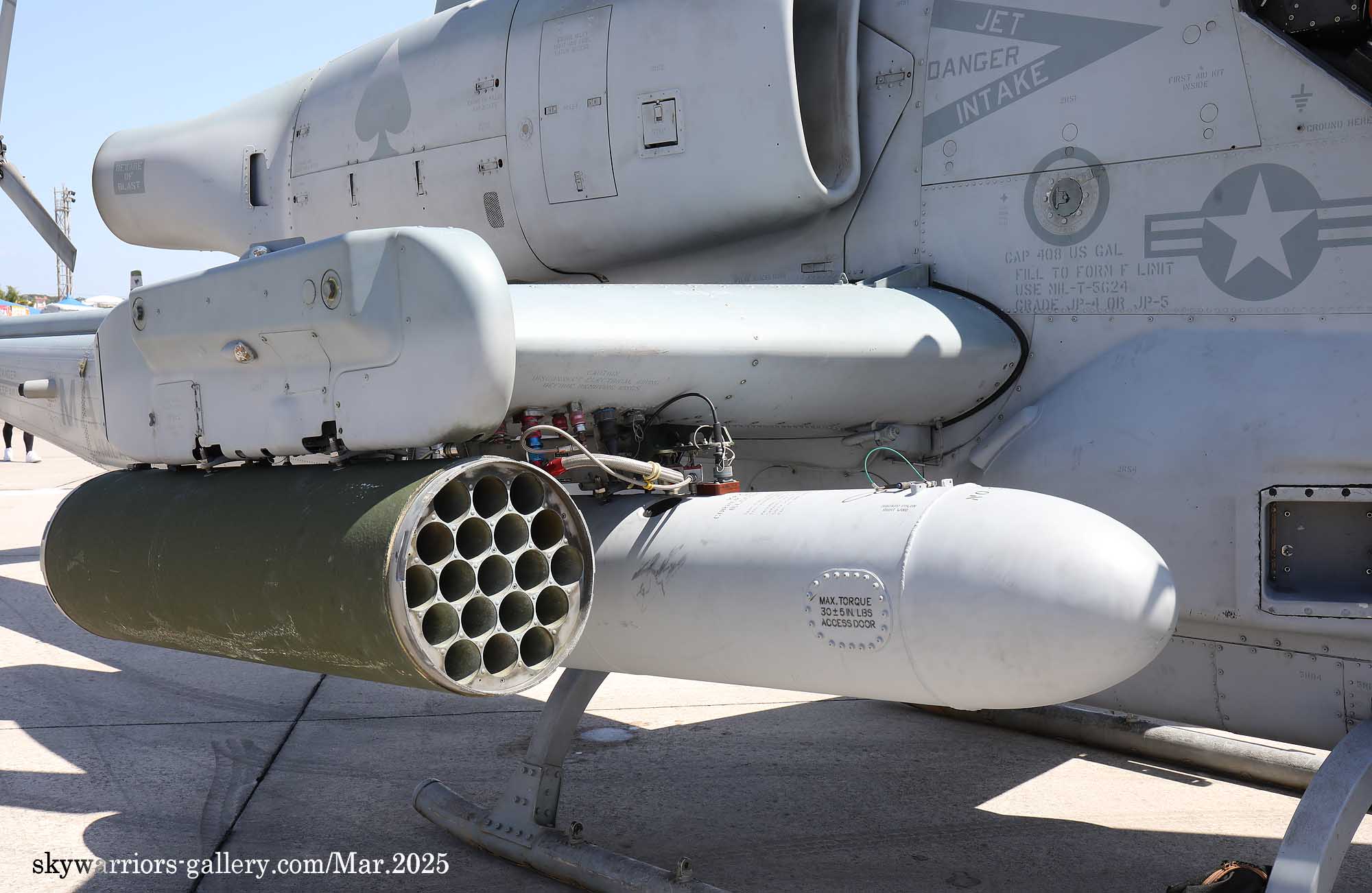 ↑ 機体各部の写真もいつも通り並べてみる。左右で異なったロケットランチャーを装着しているなど武装も興味深いが、塗装も各所で濃淡の違うグレー色を用いており、海兵隊のマーキングの変遷を追うとこれも興味が尽きない。
