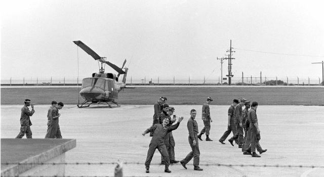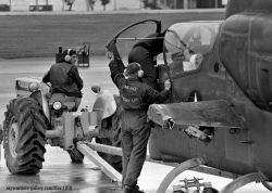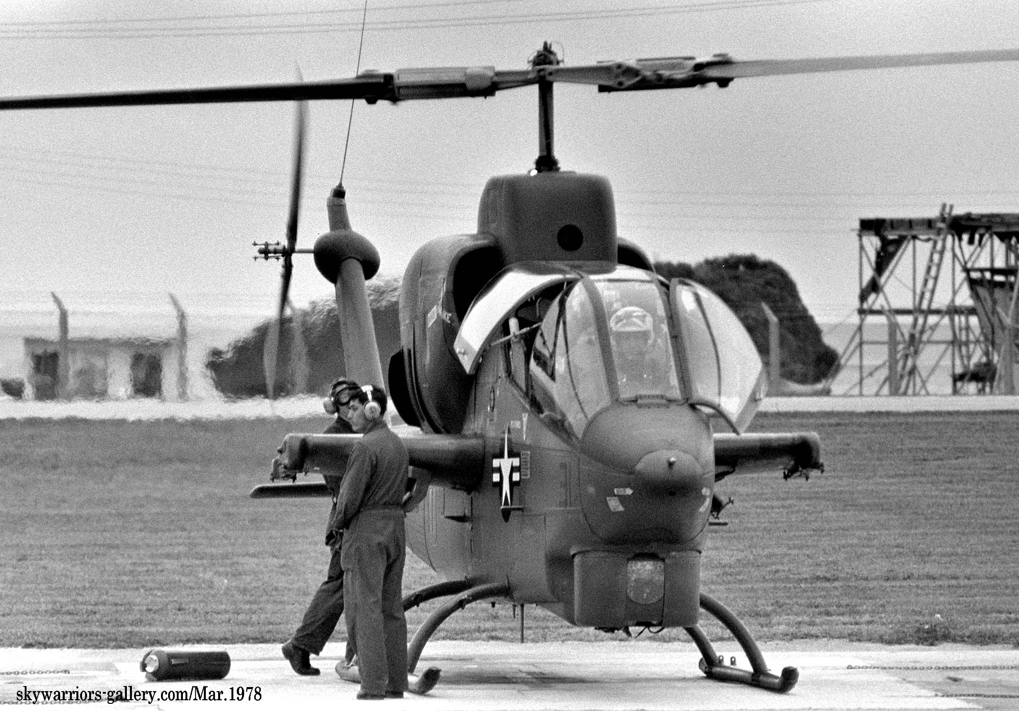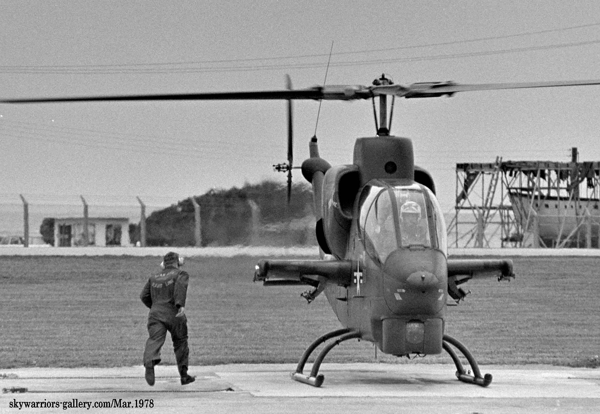 ↑ ハンビー飛行場での飛行訓練では、武装を一切付けないクリーンな状態で、繰り返しのホバリング飛行、空中での回転運動、接地訓練が繰り返された。部隊としてJ型を取得して1年余り、まだまだ習熟訓練が必要であった。