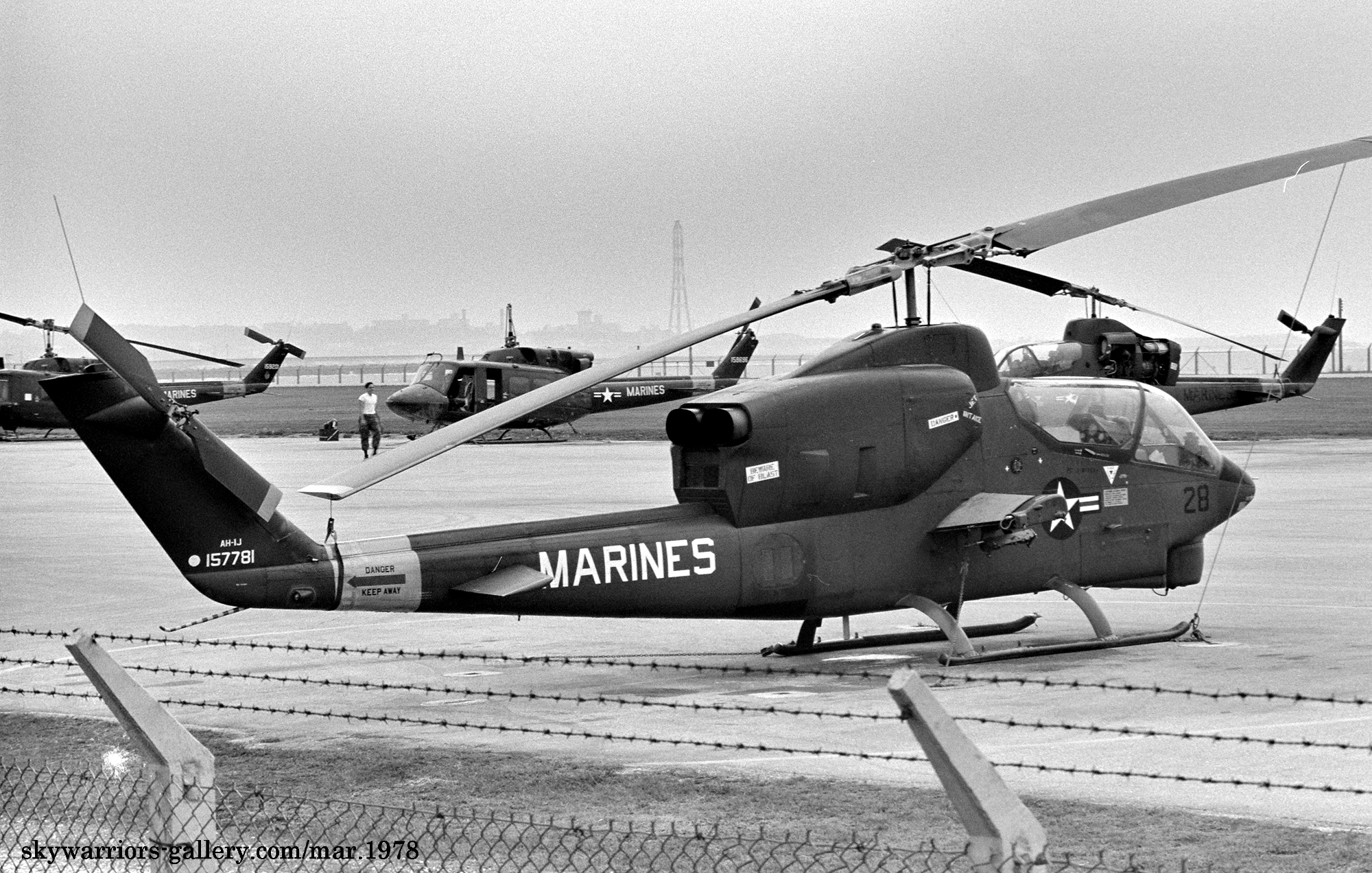 ↑ J型は、本格的な海兵隊仕様の攻撃ヘリであった。この後W型⇒Z型と発展して行くが、機首から胴体中央部まで流れるような流線型をもつ、最も美しいフォルムを持っていたこう攻撃ヘリだったと私は思う。