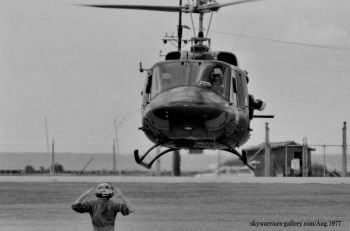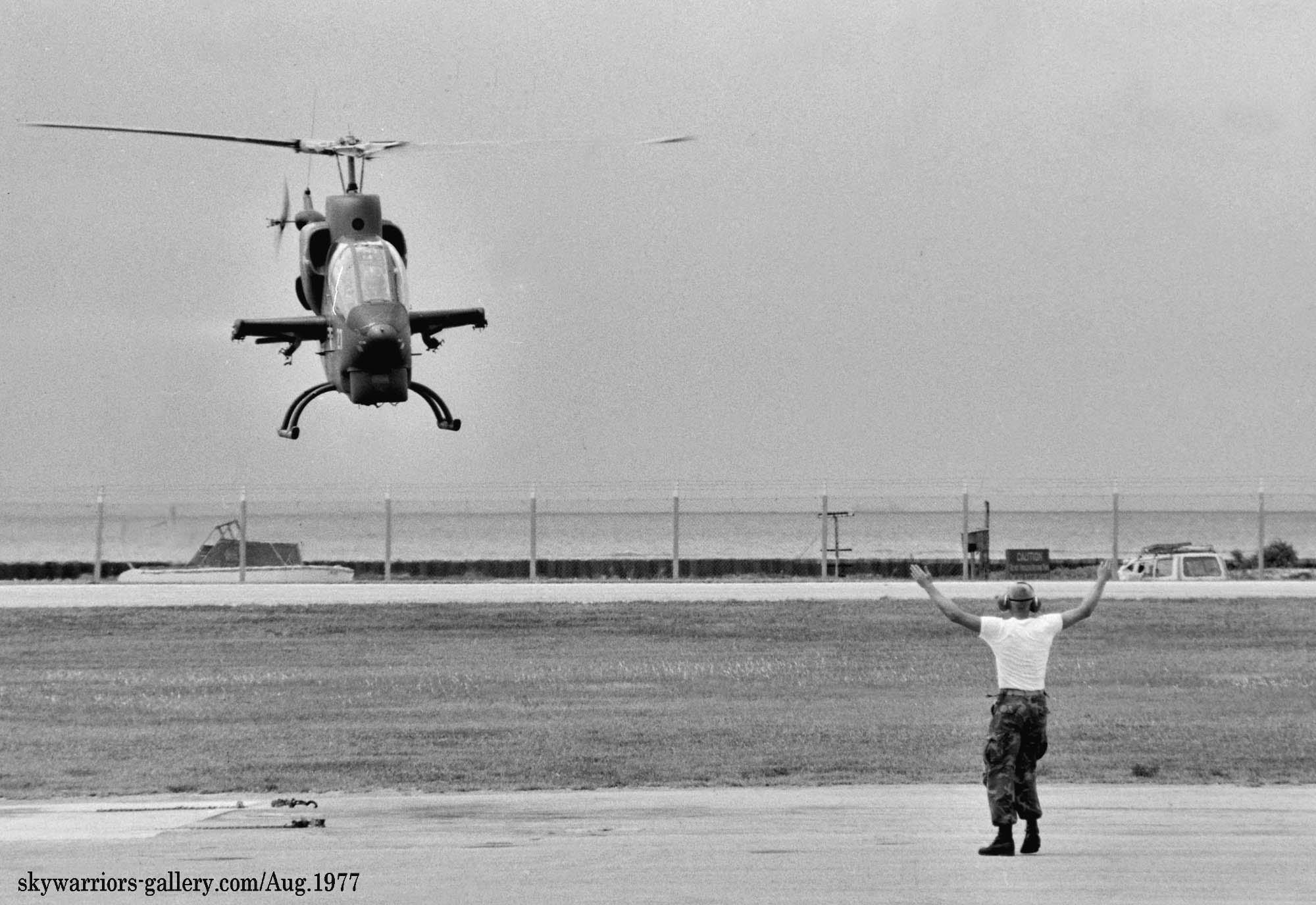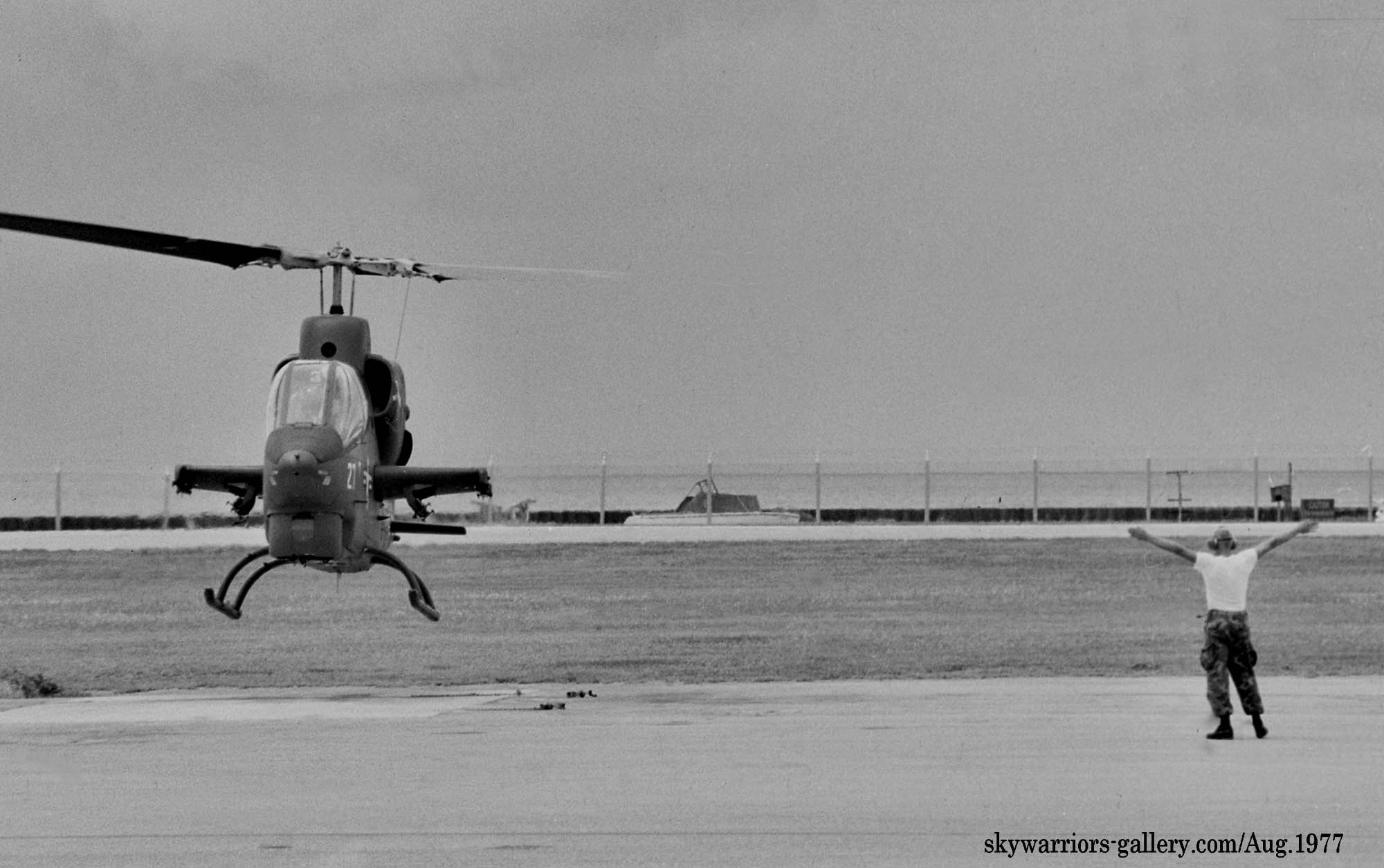 初めて沖縄に行った1977年の夏、私と友人はホテルを取った那覇市内からバスに乗って目的地嘉手納基地に向かっていた。これから目の前に現われるであろう憧れの嘉手納基地に胸は高まるばかりで、今か今かと左右の風景を目をやると、突然左手に海兵隊航空部隊の基地が国道にすぐ脇に現れた。何と国道と平行にエプロンには、AH-1J、UH-1Nがずらりと列線をなしている。なんだ此処は!200mm?いや手前に並んでいるのは50mmの標準レンズでも撮れそうじゃないか・・その日は流石にそこでバスを途中下車することはしなかったものの、嘉手納基地に通う合間に1〜2度は顔を出してみようと考えた。そこはハンビー飛行場(Hamby