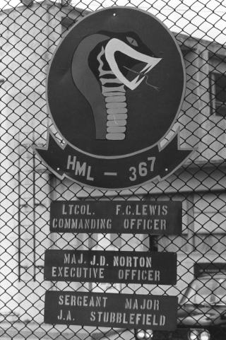 HML-367は、1943年に東海岸バージニア州クゥアンチコで偵察飛行隊として設立された。太平洋戦争では海兵隊の偵察任務を沖縄戦などで行っており 沖縄とは元々縁がある飛行隊のようだ。設立当初VMO-3と言う部隊名を持っていたようだが、1969年3月にHML-367と名称変更し、同時にUH-1ヘリの受領を受け、武装してベトナム戦を戦っている。UH-1以前は何を使っていたかは不明であるが、ベトナムには1966年ごろから派遣されていたようで1971年に沖縄に移動するまで長い間、ベトナム戦を戦っていた歴戦の部隊である。この間、1969年にはAH-1Gコブラを24機受領している。