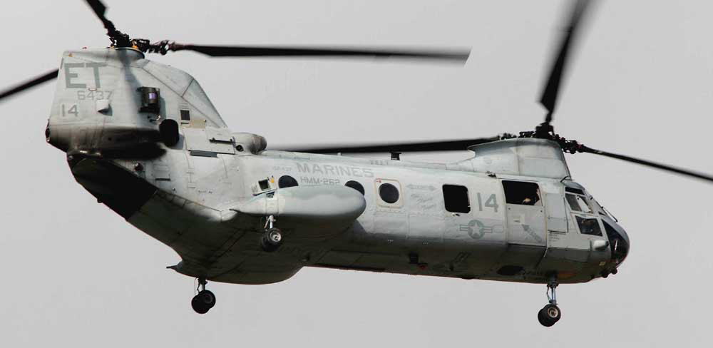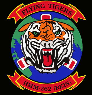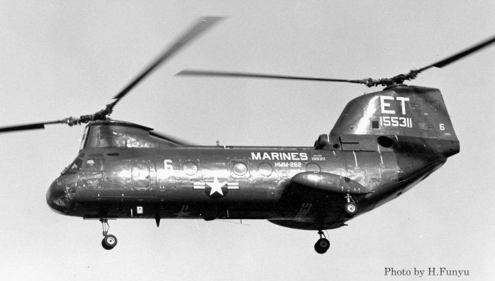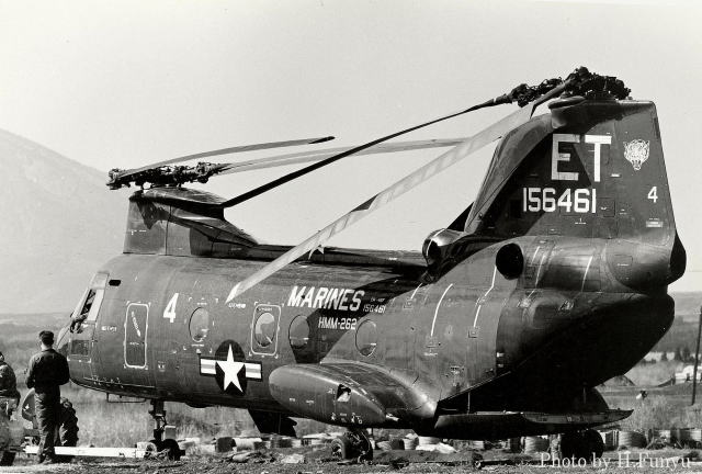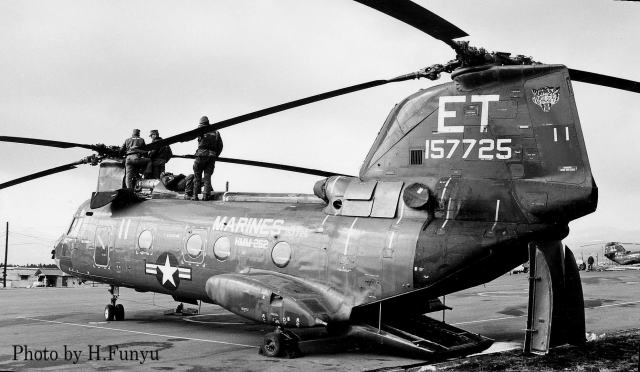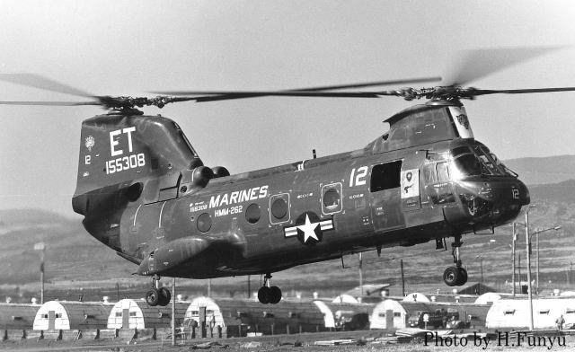 HMM-262”フライングタイガース”は、1951年に ノースカロライナ州のチェリーポイントで編成されたヘリ部隊としては、歴史の古い部隊である。当然朝鮮戦争でも活躍し、ベトナム戦争にも参加した歴戦の部隊と言える。1970年代は、ハワイのカネオヘ基地をベースにしていたが、時々揚陸艦トリポリに乗って、沖縄やキャンプ座間を訪れたことがあるので、多くの日本のマニアがお目に掛かる事のできたヘリ部隊なのだ。