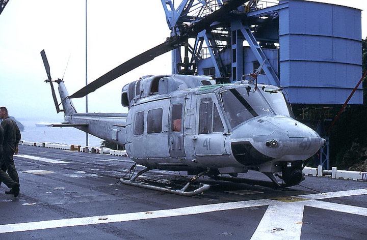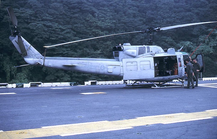 1998年揚陸艦ベローウッドに搭載され 横須賀を訪れたHMM-262(Rein)の面々。上の写真からは20年の年月が経過していると思うと感慨深いものがある。大きく変わったのは、海兵隊所属機のマーキングがグレー基調になったことである。下のUH-1Nは、何処の所属機からはマーキングでは判明しなかった。海外遠征の場合は原所属部隊のマーキングはほとんど消されるケースが多いからである。よって、このUH-1NもHMM-262(Rein)の所属機としてこのページで紹介することとした。