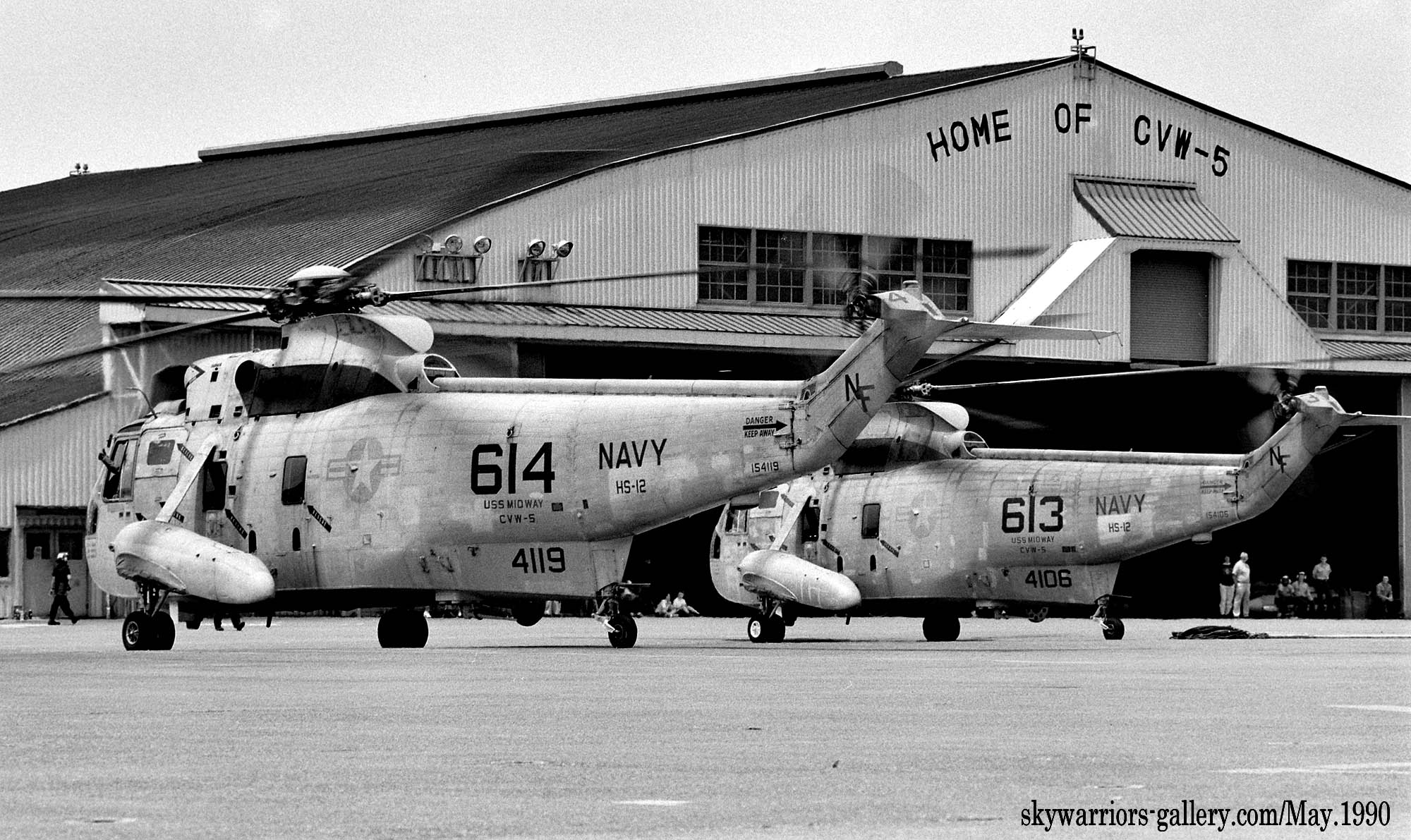 ↑ 1992年4月12日 厚木基地航空祭 Wing-92で飛行展示するHS-12のSH-3G NF-613/615