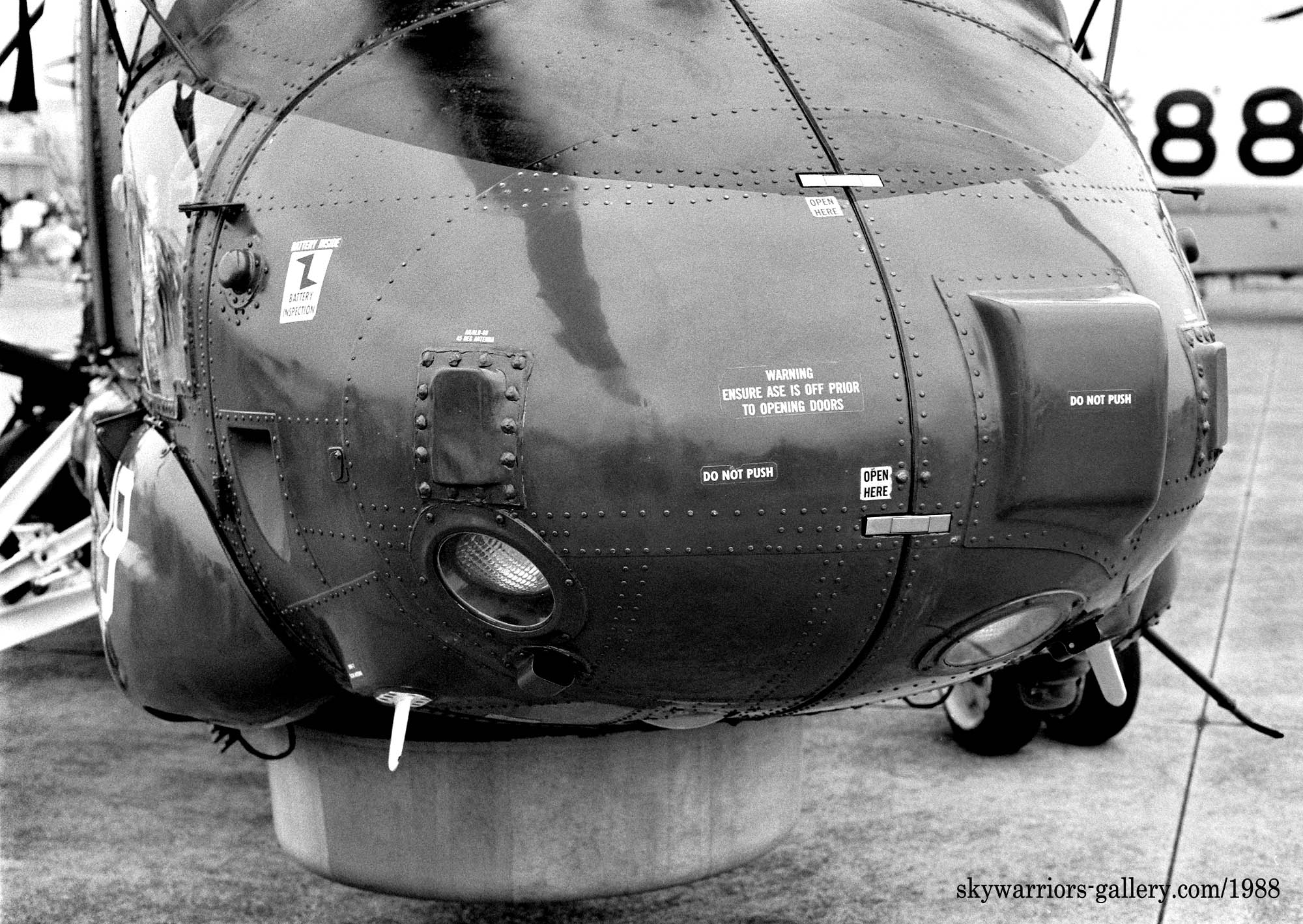 私が写真を始める前は、アメリカ海軍には対戦空母なる艦種が有り、S2F-1 トラッカー等が搭載されて艦隊の周辺を警戒したり船団護衛を行っていた。この固定翼機が持っていた対戦作戦能力は、機材が大型でしかも複雑でもあり一朝一夕にヘリコプターへの搭載が難しかった。小型のフリゲートにも搭載が可能なH-2型ヘリに小型化された対戦機材が搭載されて後は、ヘリ搭載駆逐艦が主流になり、大型空母搭載のS-3以外すっかり対戦固定翼機を駆逐してしまった。海上自衛隊の場合HSS-2なんて大型のヘリを運用したため、ヘリ搭載護衛艦は皆3000トン以上のクラスになったが、アメリカ海軍はSH-2シースプライトと言う小型ヘリを多用した。撮影の為、厚木基地のお墓通いをした私は、此処で良く撮れたこのシースプライトが大好きであったのだ。一時はファントムがT/Gしていても エンドに行かずお墓でSH-2のフライトの方を選択していた位である。当時、厚木で比較的に撮れたのが、TF/TH/TGのレターをつけたシースプライトであったが、艦名とソノブイ投射部のパネルに書かれたパーソナルマーキンクをコレクションとして楽しんだ。