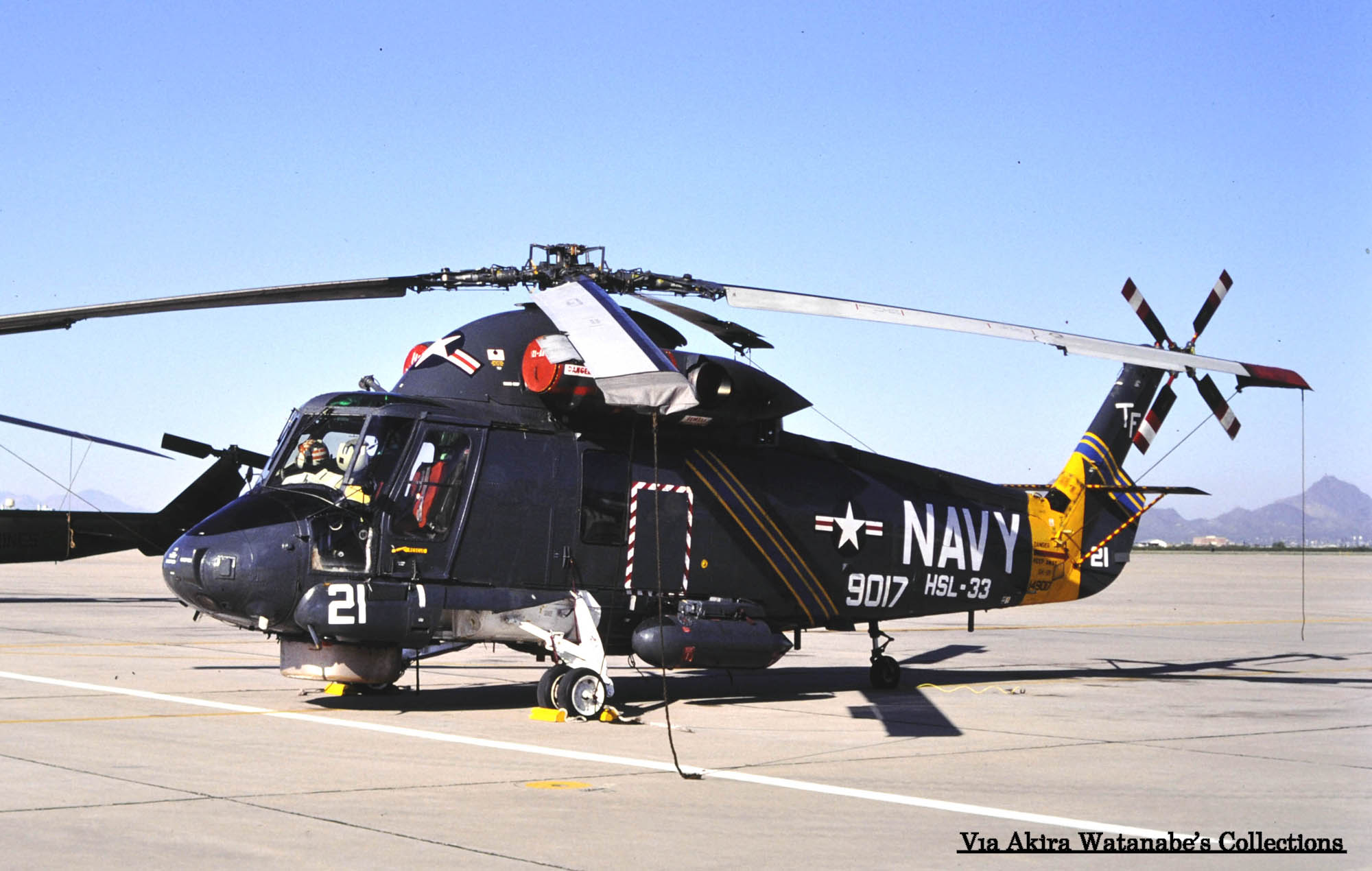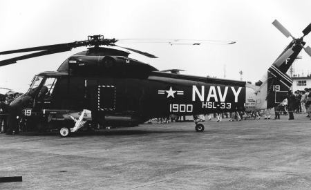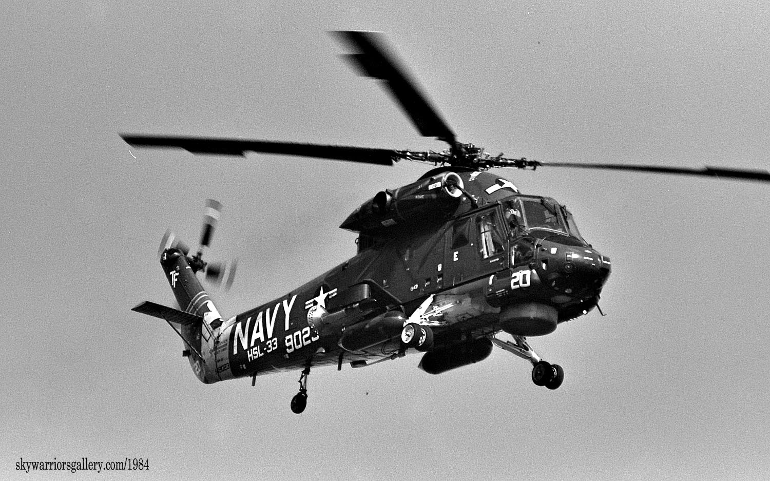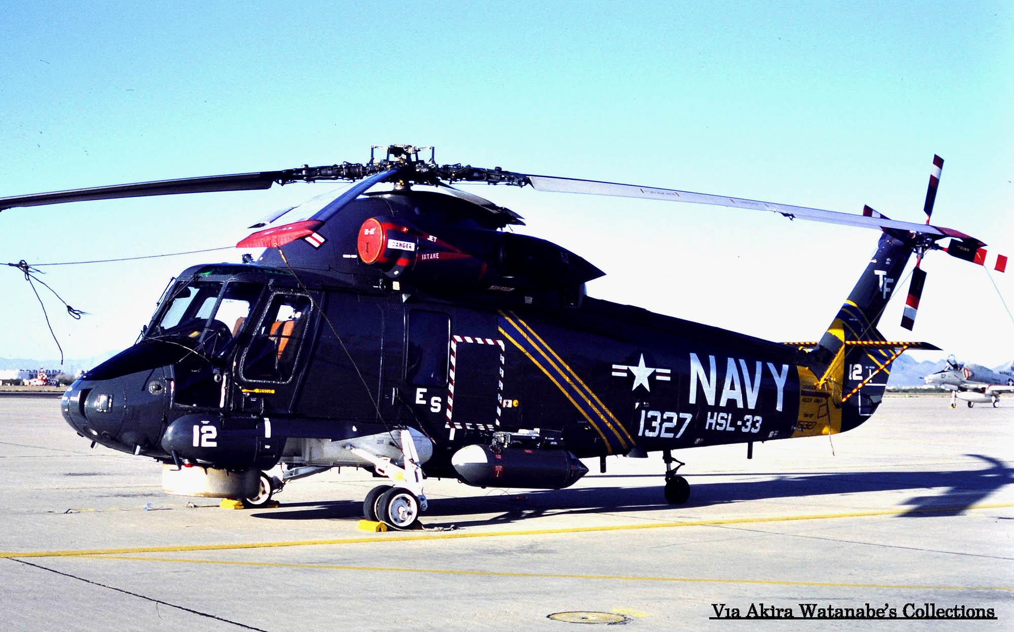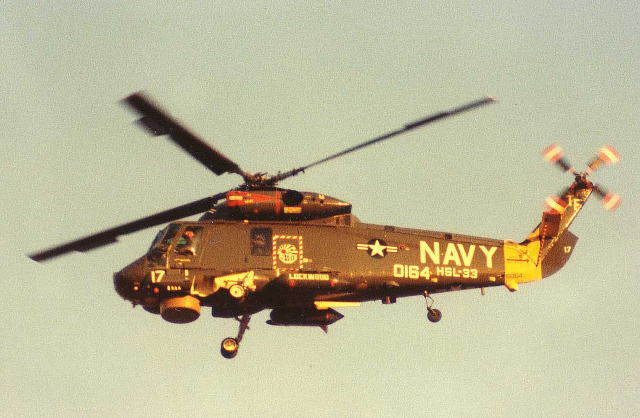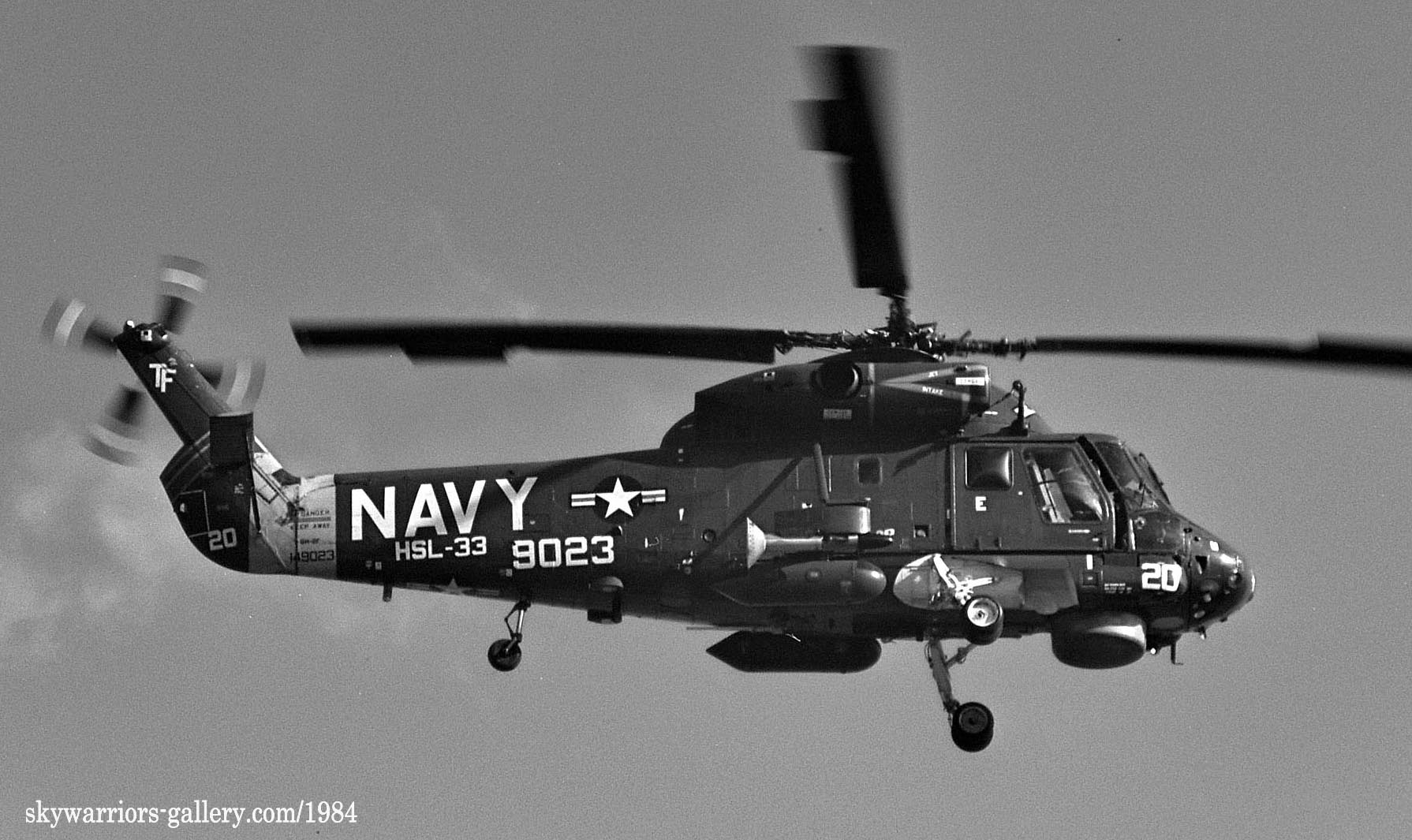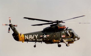 ↑ 1984年6月 ディビスモンサン空軍基地で撮影されたHSL-33 SH-2F/Bu.No.151327 。この機体は、撮影日より2か月後の1984年8月 インド洋で墜落し2名の乗員が死亡している。