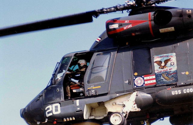 LOVKWOOD搭載のHSL-33所属SH-2F TF-17(Bu.No.150164)。右手の写真は何もなくつまらないが、機体の左手が艦名と”アート”が面白い!!
