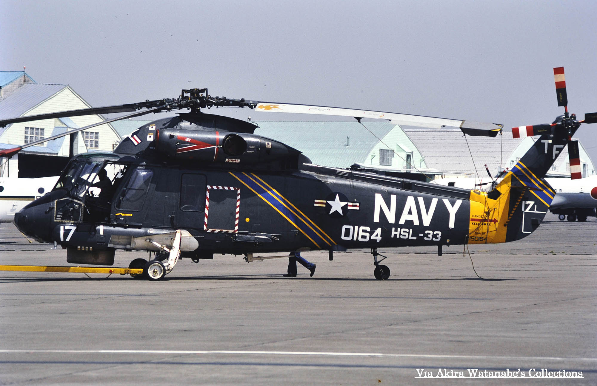 ↑ 1983年5月厚j基地のエプロンで撮影されたHSL-33 Det-10のSH-2F/Bu.No.150164。この機体は1983年11月に事故で失われた。