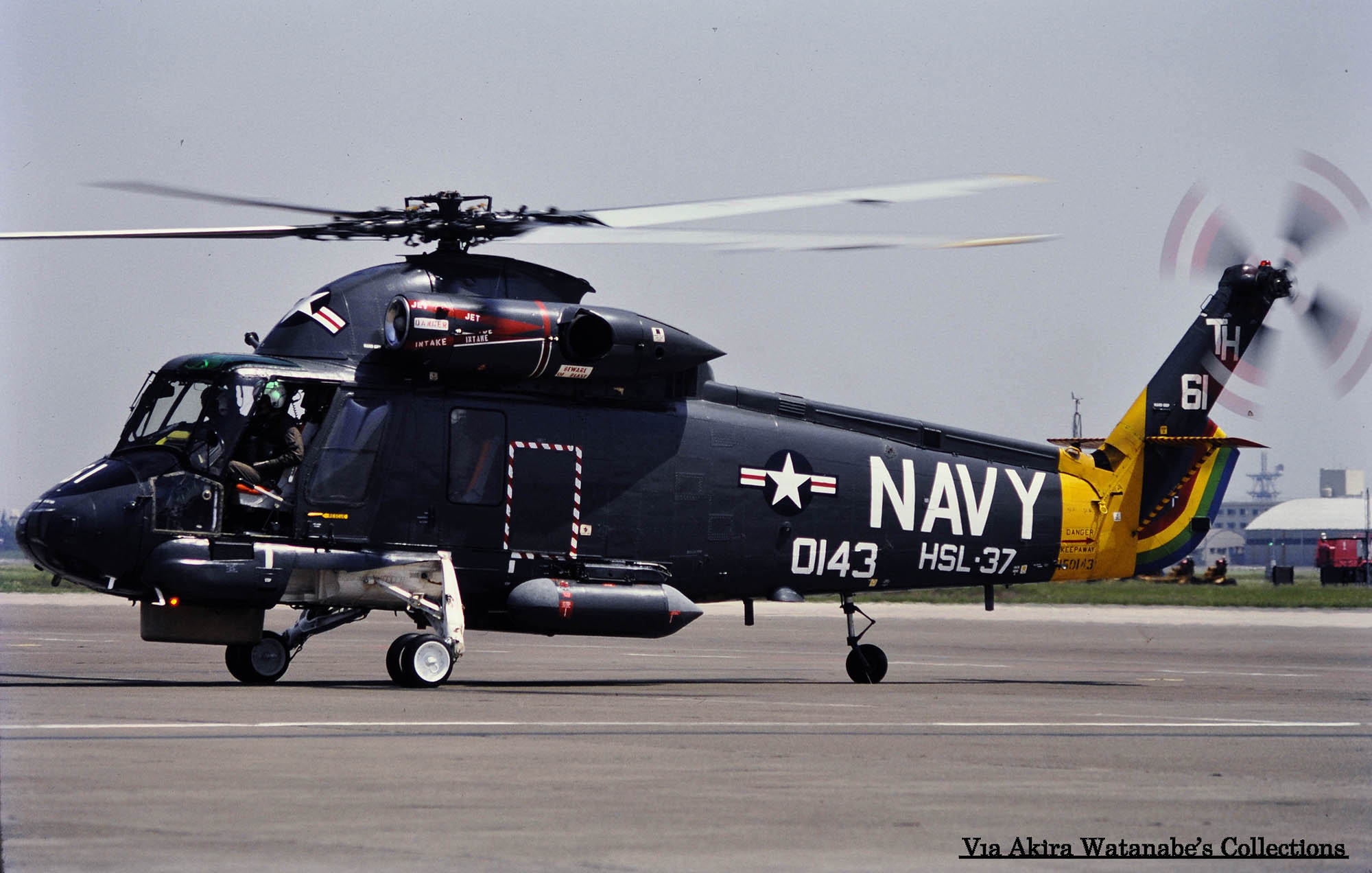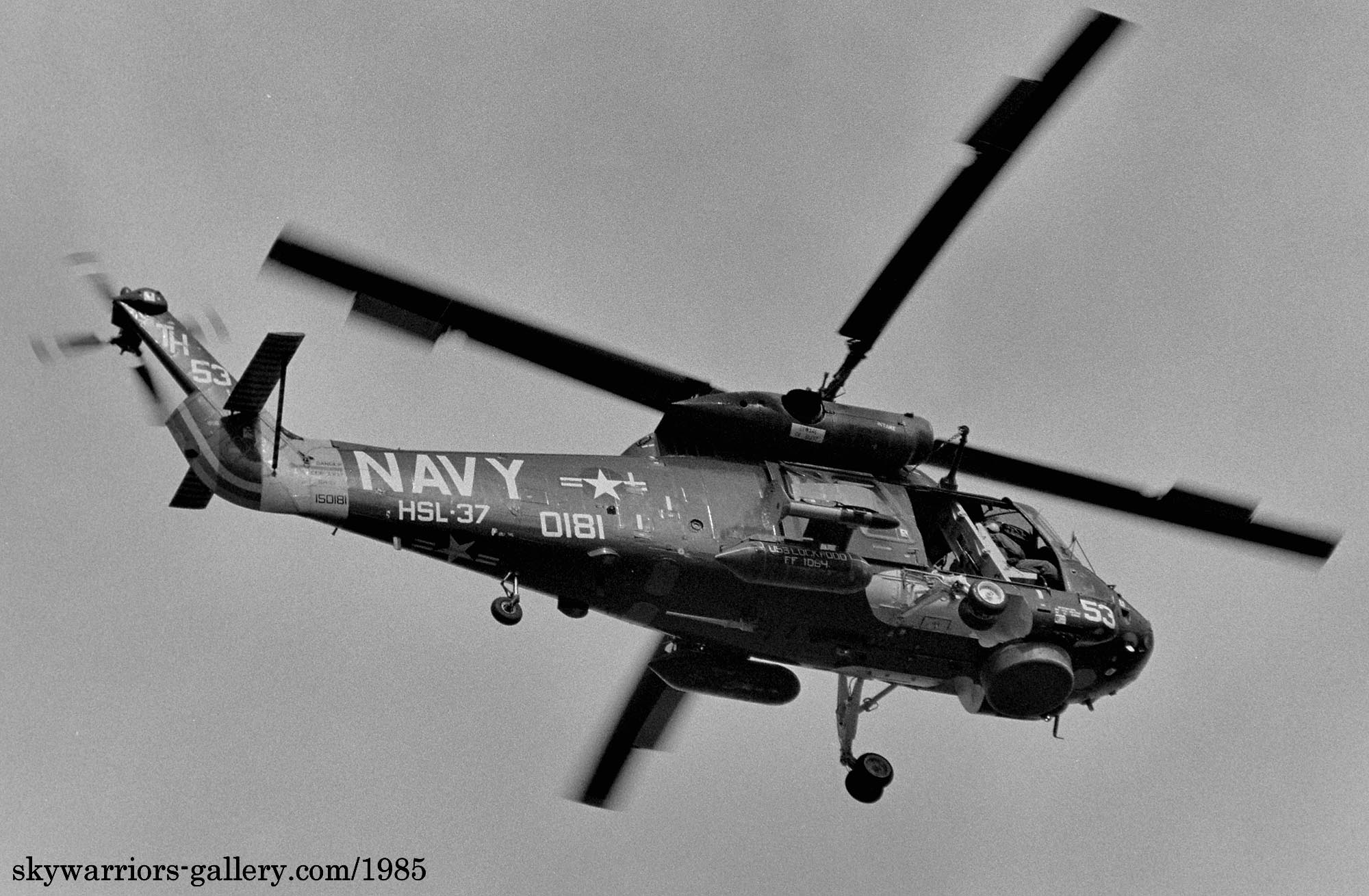 USS LOCKWOOD搭載のTH-53(Bu.No.150181)、以前はHSL-33所属のTF-17がこの艦に乗っていたのだが、後にTH-53に変更された。尾部のそれまで機番が書かれていた場所にレインボーマークが入り 他の部隊との見分けがつきやすくなった。この機体は後に民間会社に売却されたようだ。