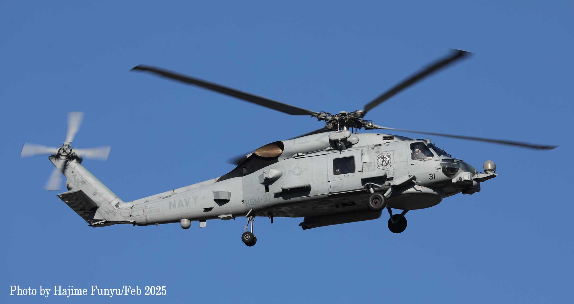 HSL-37は、2013年10月に部隊の改変を行いHSM-37に名称も変わった。装備していたSH-60Bも2015年2月に運用を終了し、新たに多用途運用が出来るMH-60Rを部隊配備している。第7艦隊のフリゲート艦などに搭載され。厚木基地にも飛来することがあるが、本拠地は、ハワイのカネオヘ海兵隊航空基地であり、厚木基地でいつも撮影できる部隊ではないので、捉えた映像は貴重である。