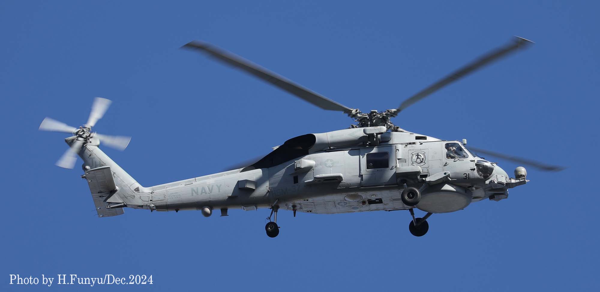 ↑ フニュ師匠が撮影したHSM-37のMH-60R/Bu.No.168085。昨年も厚木基地に飛来しているが、左側面にカラーでマークが新たに書き込まれている。